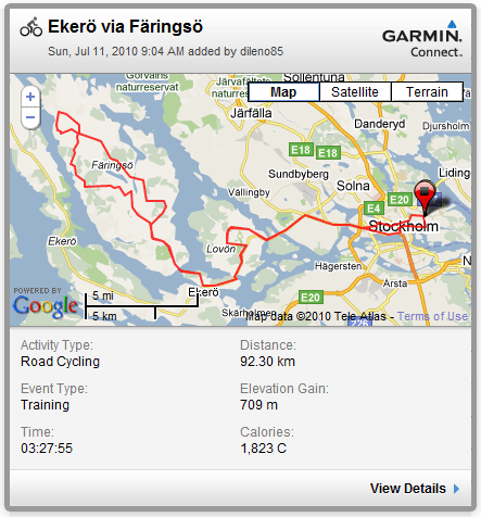 Jag har en ny bästa vän som heter Garmin Edge 500. Tack vare min Garmin-GPS kan jag spela in mina rundor och få massa statistik. Sjukt kul! Klicka på bilden för mer avancerad info om rundan.