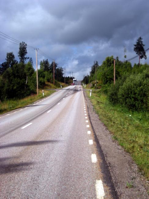 Vägen jag tog gick bortåt Uppsala – med Knutby som delmål. Det var flera sköna stigningar på vägen, 12 % som mest tror jag. Det jobbigaste var dock alla långtradare som jag mötte. Min Cervelo R3 väger knappt någonting och jag själv är snarare en klättrare än spurtare (alltså väger lite), så det behövs inte mycket för att cykel och cyklist ska rubbas när möte sker med lastbilar på över 25 ton. Hur råder man bot på det liksom? Hur som helst klarade jag mig från att hamna i diket.
