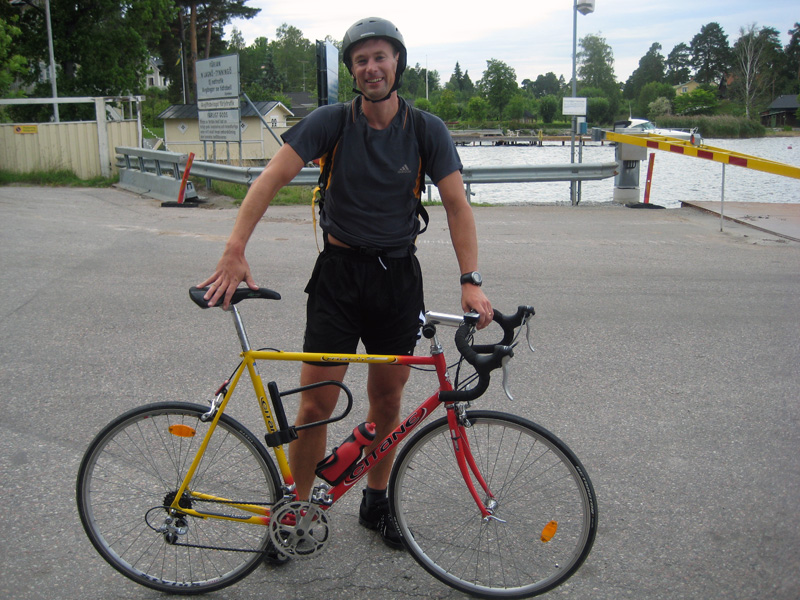 Vid färjan träffade vi på en till cyklist, David, som hade bra koll på läget och verkade vara på väg hem åt det håll vi skulle. Trevlig kille det där! Båten över kostade 20 kr och gick hur smidigt som helst. Kul! Väl på Tynningö släppte vi förbi alla bilar innan vi tog oss till norra sidan och Vaxholmsbåten. Riktigt kul vägar var det på den lilla ön. På Vaxholmsbåten hittade vi en till cyklist och fördrev lite tid innan vi kom i land igen. Bra att veta om man tar Vaxholmsbåten: kostnad 45 kr per person (åtminstone sträckan Tynningö-Vaxholm).