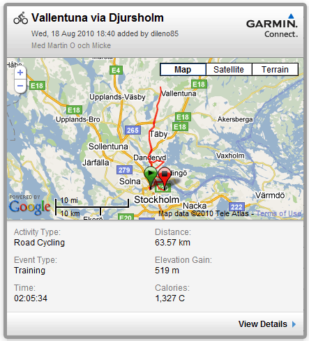 Min kollega Martin, hans polare Micke (med världens kanske snyggaste ställ från Caisse d’Epargne), och jag, tog oss ut en runda under onsdagskvällen. Vi utgick från St Eriksplan och började rundan som sig bör med Stora Skuggan och sedan genom Djursholm innan vi tog oss norrut förbi Enebyberg till Vallentuna. Detta är trakter som jag börjar bli högst bekant med, helt enkelt för att det är bra cykling och på vägen ut mot vackra Roslagen.