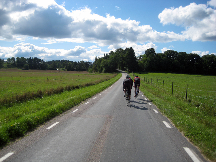 09 på lördagsmorgonen rullade Fredrikshof ut från Maltes på Lidingö och ut mot Roslagen. Det gick snabbt redan från början och tyvärr bestämde sig en av oss för att fortsätta cykla på egen hand i eget tempo. Övriga fyra, Peter E, Peter E ( 😉 ), Henrik och jag, fortsatte via Djursholm ut mot Enebyberg och vidare mot Angarn via Ullna.