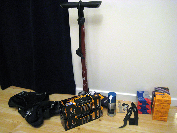 Hur som helst så är allt nu införskaffat! Cykeltransportväska modell CykelCity (fast blå) och plast att skona cykel och komponenter med är skaffade sen tidigare och har nu kompletterats med silvertejp, energi i form av Dalblads sportdryck + liquids/gels (se samtliga Dalblads-produkter), Assos Chamoix-byxfett och såklart god läsning!