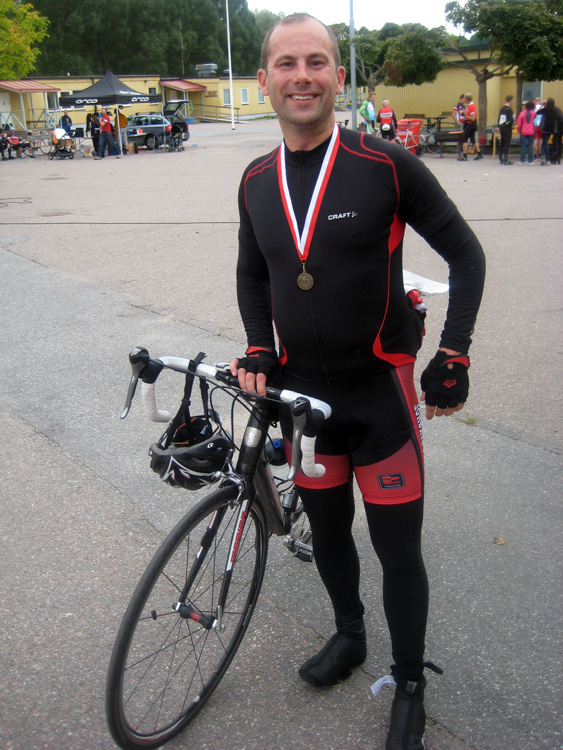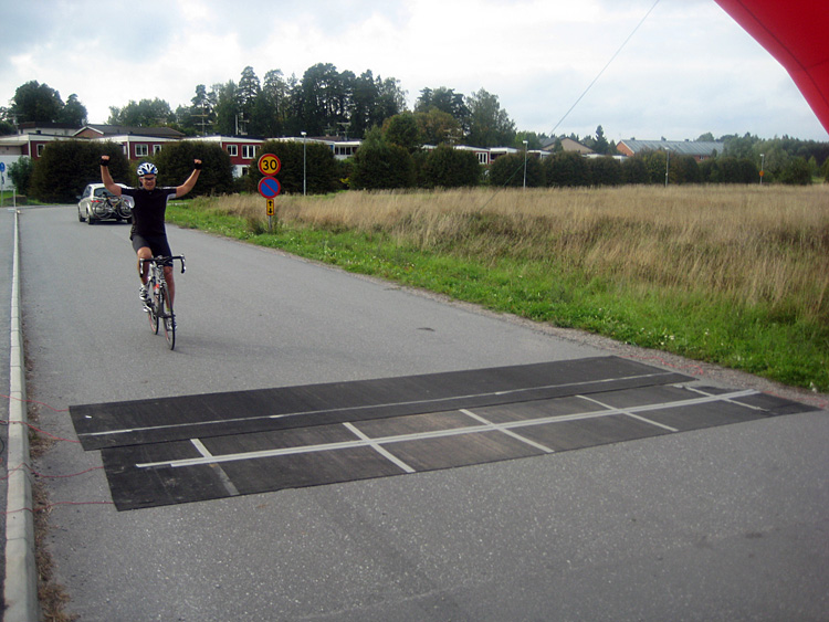 Roland Lycksell och jag korsa mållinjen samtidigt, fast Rolle gled över startlinjen efter mig därmed bättre tid, surt sa räven… Sen var det Robert Hulthén med röd-vita Trek’en som rulla in som fyra av vårt gäng.