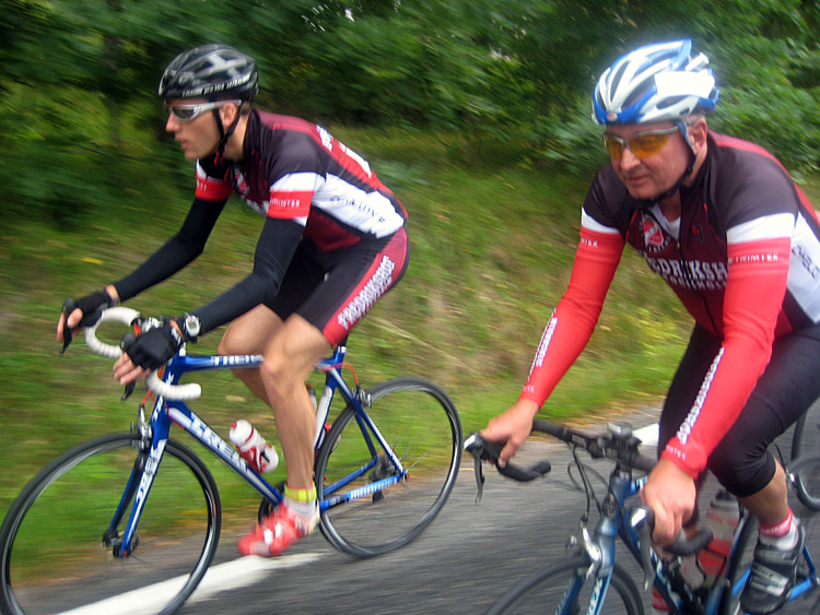 Peter E och jag passerade även tidigare elitcyklisten Per med en bit kvar till mål. Per hade fått rejäl kramp efter många fina förningar tidigare under loppet. Eloge för de förningarna!