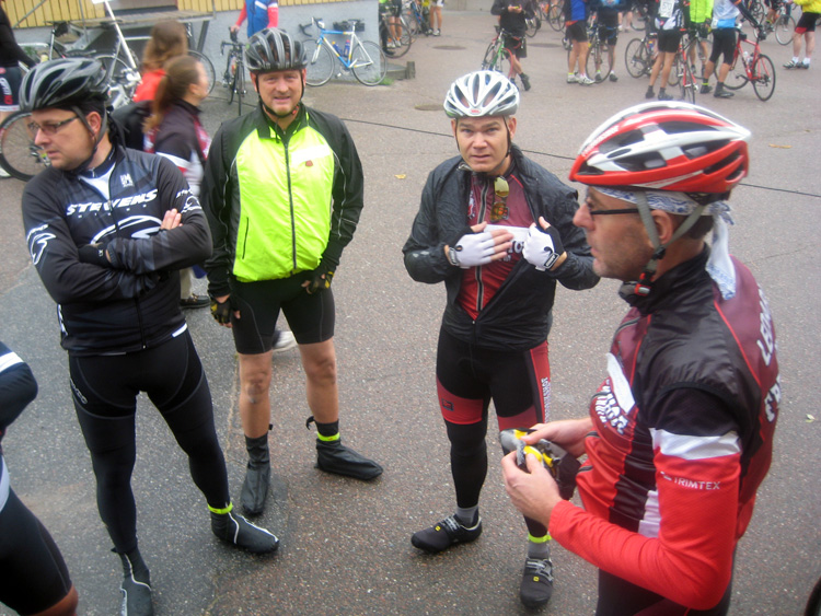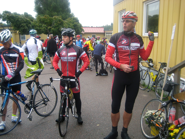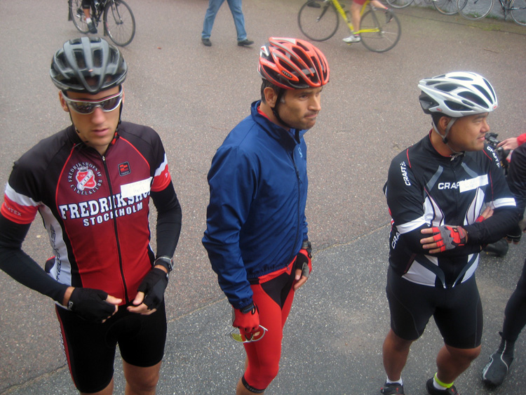 När jag kom ut något sent till Upplands Väsby och starten vid Vikskolan mötte jag upp med Daniel och Johan, och såklart Fredrikshofs Lidingögrupp. Det kändes så givet att köra med Lasse och alla andra Lidingö-cyklister, och så blev det också! Daniel och Johan var inte sena att gilla idén. 🙂