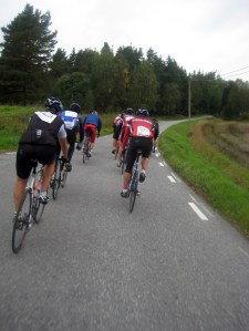 Det gick riktigt snabbt första 7 milen och de dubbla leden fungerade stundtals riktigt fint, med många som var uppe och tog förningar. Redan här stod nog Henrik Sandén ut mest, stark och lång som han är. Även Roland Lycksell, som mest ser ut att vara grym i bergen, drog riktigt bra. Fram till första (och enda för vår del) depån vid 67 km snittade vi i 35,3 km/h – riktigt bra med andra ord! Vi hade på förhand satt Henrik S som tidtagare vid depåstoppet, ca 4 min skulle vi pausa innan det var dags att ta sig vidare. Det fungerade klockrent och vi var snabbt iväg sen på de lite mindre vägarna genom Roslagen.