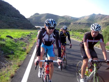 Idag var första etappen med Free-Motion som ordnar dagsturer här nere och jag träffade också Rickard W från Fredrikshof. Vi var nog 12-13 cyklister av skilda nationaliteter som cyklade ut från Playa del Ingles mot bergen, anledda av ledaren Mattias.