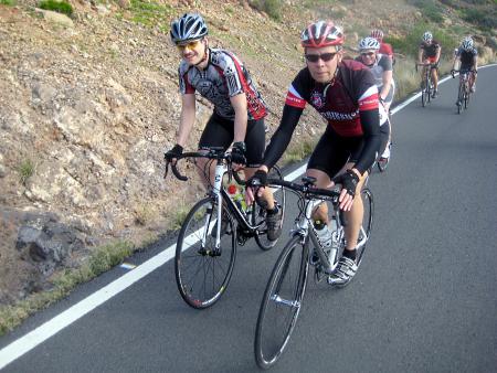 Vi tog det lugnt de inledande 25 km, innan det var dags för första riktiga stigningen för dagen. Och vilken stigning det blev. Ca 6 km med en snittlutning på nära 10 %. Lägg på det cyklister som verkade vara i form (inte undertecknad) och du har en riktigt intensiv klättring. Undertecknad hade en snittpuls på 186 på vägen upp, vilket måste betecknas som ”sjukt högt”. Vi blev väldigt utspridda under klättringen och Mattias låg såklart alltid i täten. Inte så konstigt då han leder turer på Gran Canaria sex dagar i veckan, så gott som året om..