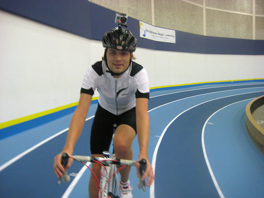 Edvard med sin GoPro-kamera på hjälmen var nog mest aero på banan idag 😉 inte tusan är det snyggt men dokumentationen blir enkel 🙂