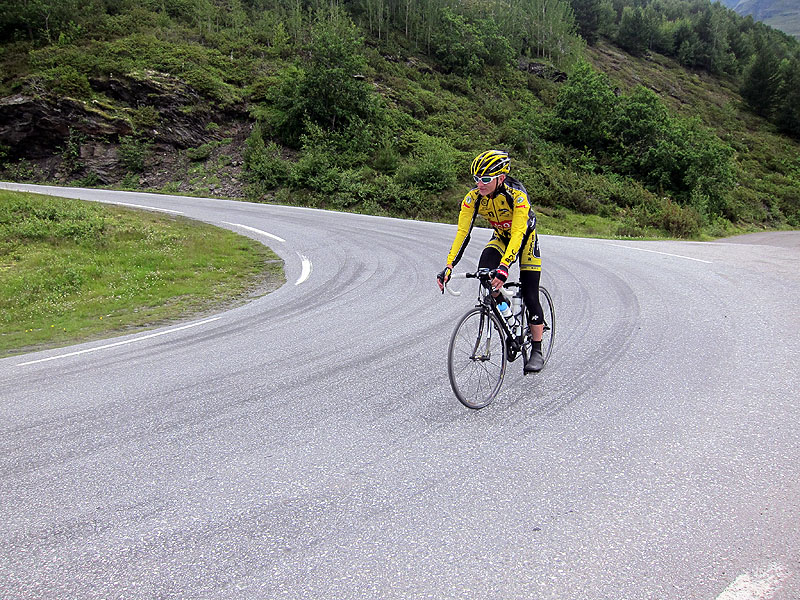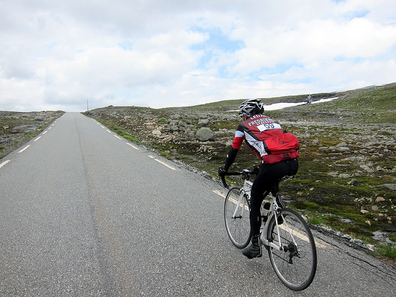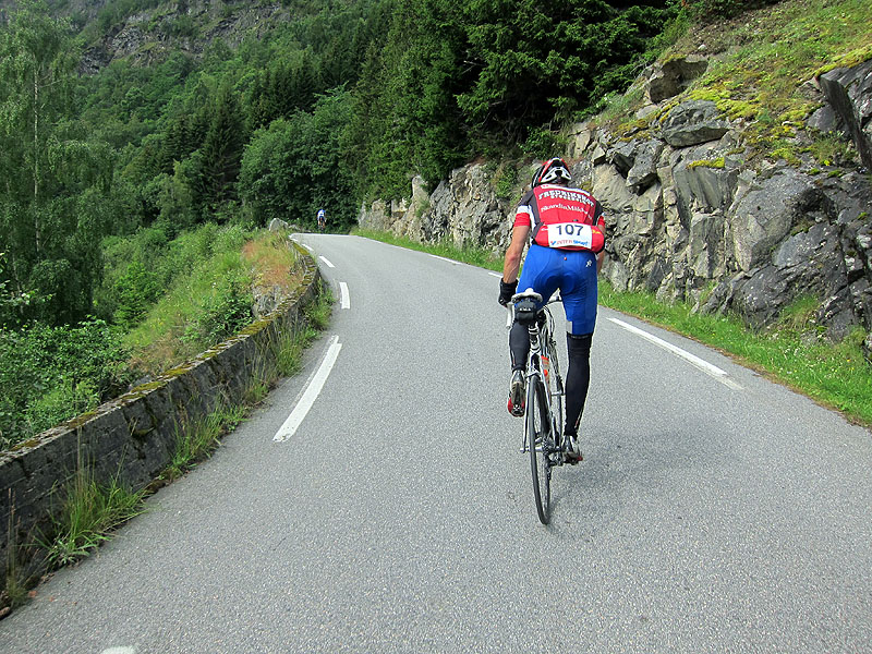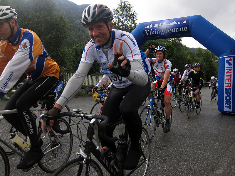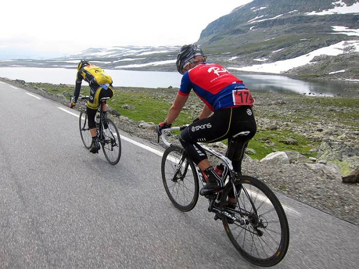 Viking Tour 2011 etapp 1 mellan Hemsedal och Aurland bjöd på osannolika vyer, tävling och en klättring som aldrig ville ta slut. Dagens jobbigaste helt klart stigningen på slutet – 15,5 km med en snittlutning på 11 % (enligt två oberoende gps-sajter). Rätt så brutalt. För egen del blev hela stigningen en 67 minuter lång intervall där jag låg på 5 slag över min mjölksyratröskel – i snitt. Antingen jag som är för dåligt tränad eller stigningen som var jobbig.. 😉