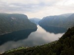Efter målgång kom sedan den bästa utförskörningen jag varit med om hittils. Helt sagolik, man bara rullade ner, njöt av vyerna och så var det knappt några bilar på vägarna. Vägarna som dessutom var rätt så okej asfalterade. På mitten av utförskörningen stannade jag och Henrik från Norge till vid utsiktsplatån, och blickade ut över norska fjordarna. Ett värdigt sätt att avsluta dagens cykelåkning på.