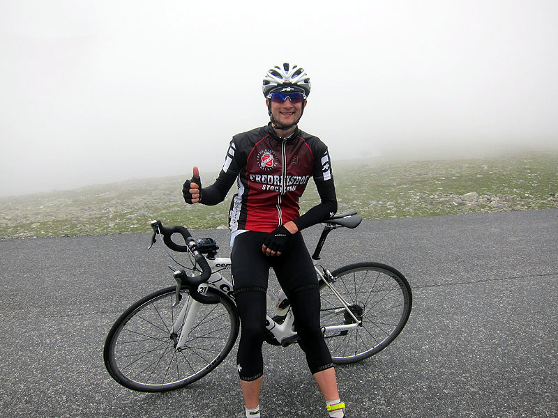 Dagens etapp var på 79 km med återigen målgång uppför, såklart 😉 I klungan var det väldigt ryckigt till en början, vilket tog något på krafterna, Många igångdrag, plötsliga fartökningar, någon attack eller två som skulle hämtas in. Men det lugnade ner sig en liten bit innan första kullen som skulle klaras av. Sedan bar det upp och ner, upp och ner några mil. I första klättringen släppte många väldigt tidigt, det börjar märkas att alla har drygt 70 mil i benen! Jag orkade inte heller med det ökade tempot, speciellt inte i dagens första klättring, så vi var ett gäng på närmre 20 cyklister som bildade en andragrupp anförd av bla mig. I utförslöpan körde vi sedan dessutom ikapp favoriternas grupp igen! Lite förvånad var man, men de hade tagit det lugnt där framme.. låg bakom dem i några km innan det var dags för dagens andra, lite mer rejäla stigning. Här släppte hela gruppen i princip direkt och vi blev till slut en liten grupp på 6 cyklister som jobbade oss upp till toppen. Därefter återigen samarbete när vägen gick upp och ner, upp och ner – och till slut bara nedåt. Här tappade vi tyvärr Arne, också från Fredrikshof, så vi var 5 st till slut som kom in i dagens näst sista klättring.