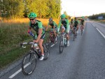Mest bevakad under kvällen var helt klart Alexander Gingsjö, vars attacker här och var under loppet alltid täcktes. Till hans avgörande attack i backarna på andra varvet – klungan var något decimerad nu efter lite hårdkörning – och utbrytarna (visade det sig senare..) hade körts in. 4 cyklister kunde gå med i attacken och jag gjorde ett riktigt skapligt försök att gå med, men något sen reaktion och växelstrul gjorde att jag hamnade alldeles för långt efter och som närmast var 10 meter ifrån vad som skulle visa sig vara ledargruppen (jag hade ingen aning om att det var de som nu ledde). Jag kunde alltså inte täppa luckan och sätta på mig på hjul. Dessutom hade jag fått en rätt så rejäl lucka på gruppen bakom, så jag var solo i några km, bakom ledarna men några hundra meter framför andragruppen som snart började att jaga. Slog av på takten och inväntade andragruppen där vi sedan kunde samarbeta någorlunda för att köra in så mycket som möjligt på de 5 där framme. Det lyckades nästan.