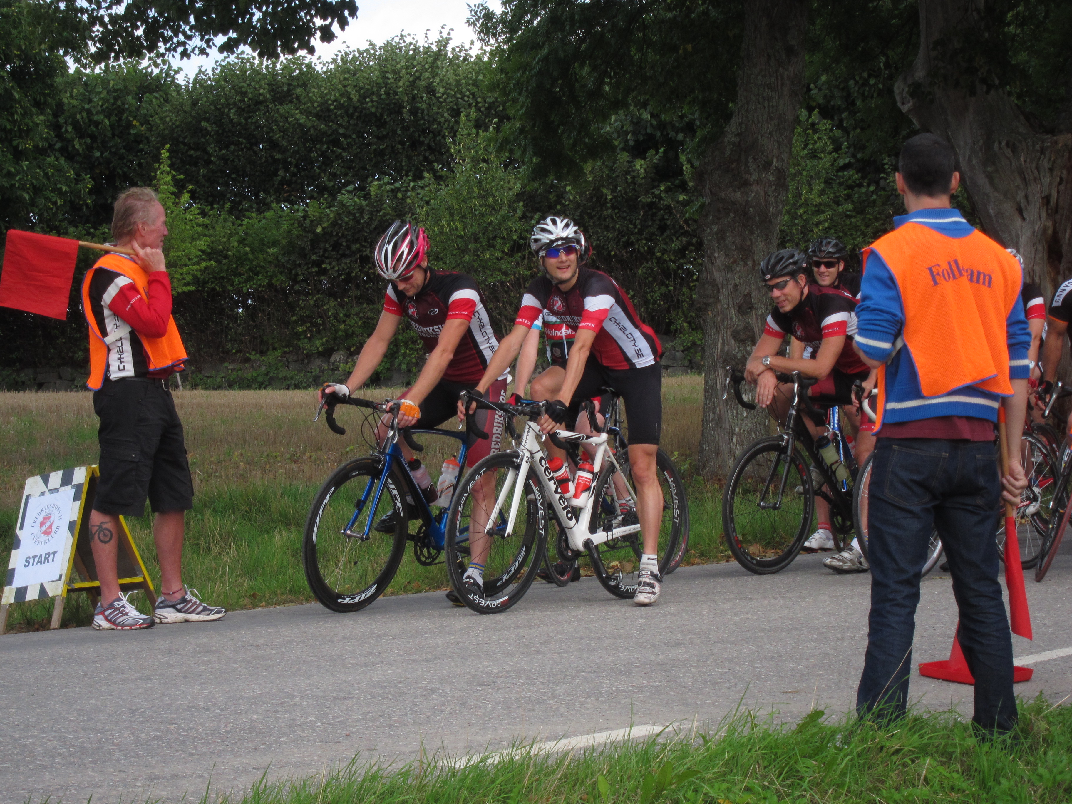 Jag och Mic körde ut till Bornsjön och Sturehovs slott, start & mål för dagen. Värmde upp och sedan dags att ställa sig på startlinjen. Där stod redan Jonas Nordin längst fram med ca 20 cyklister bakom. Jag ställde mig sida vid sida med Jonas, nybliven tempomästare i Fredrikshof. Jag visste att jag var tvungen att hålla koll på Jonas för att ha chans på en bra placering i loppet.