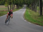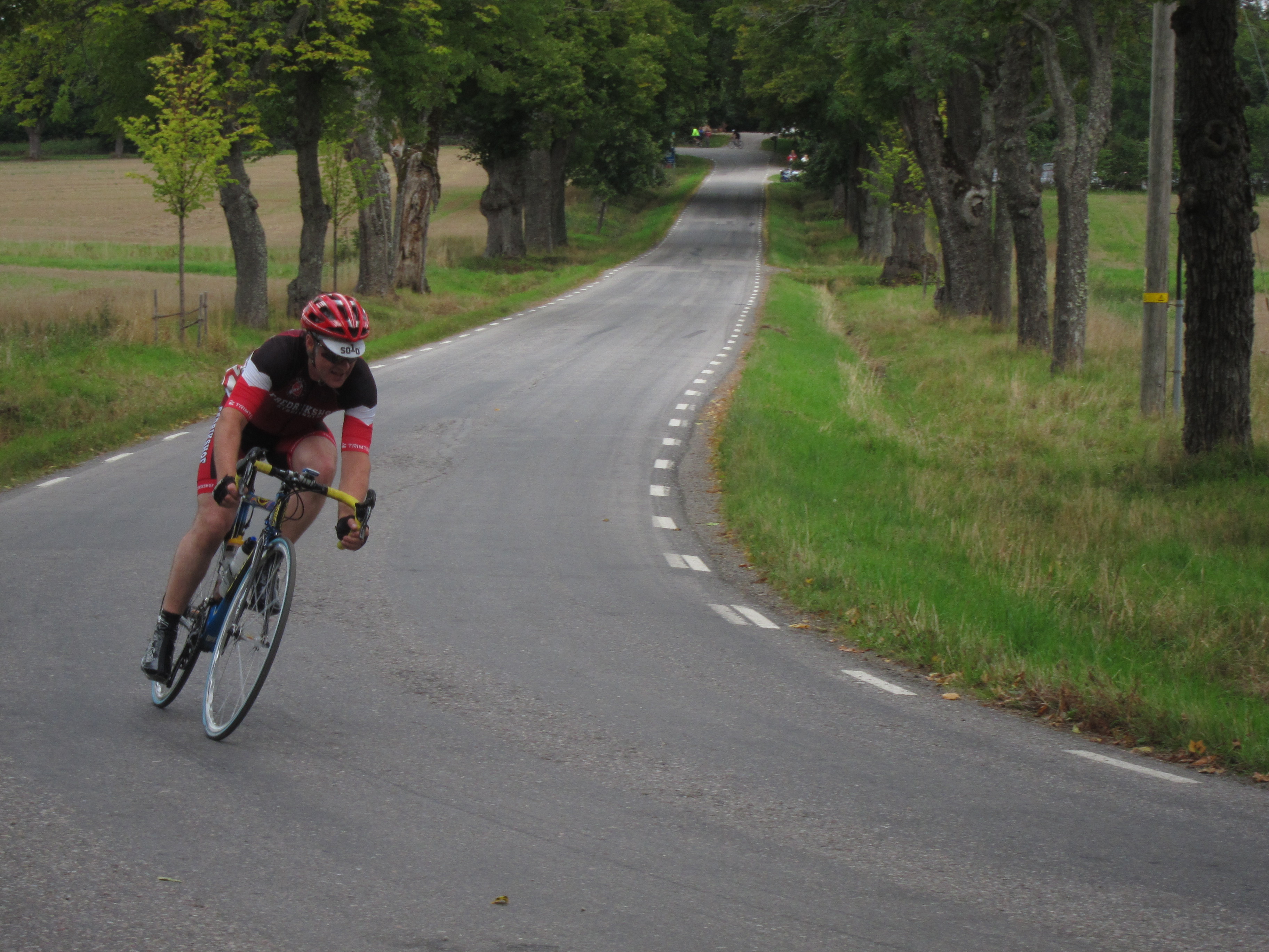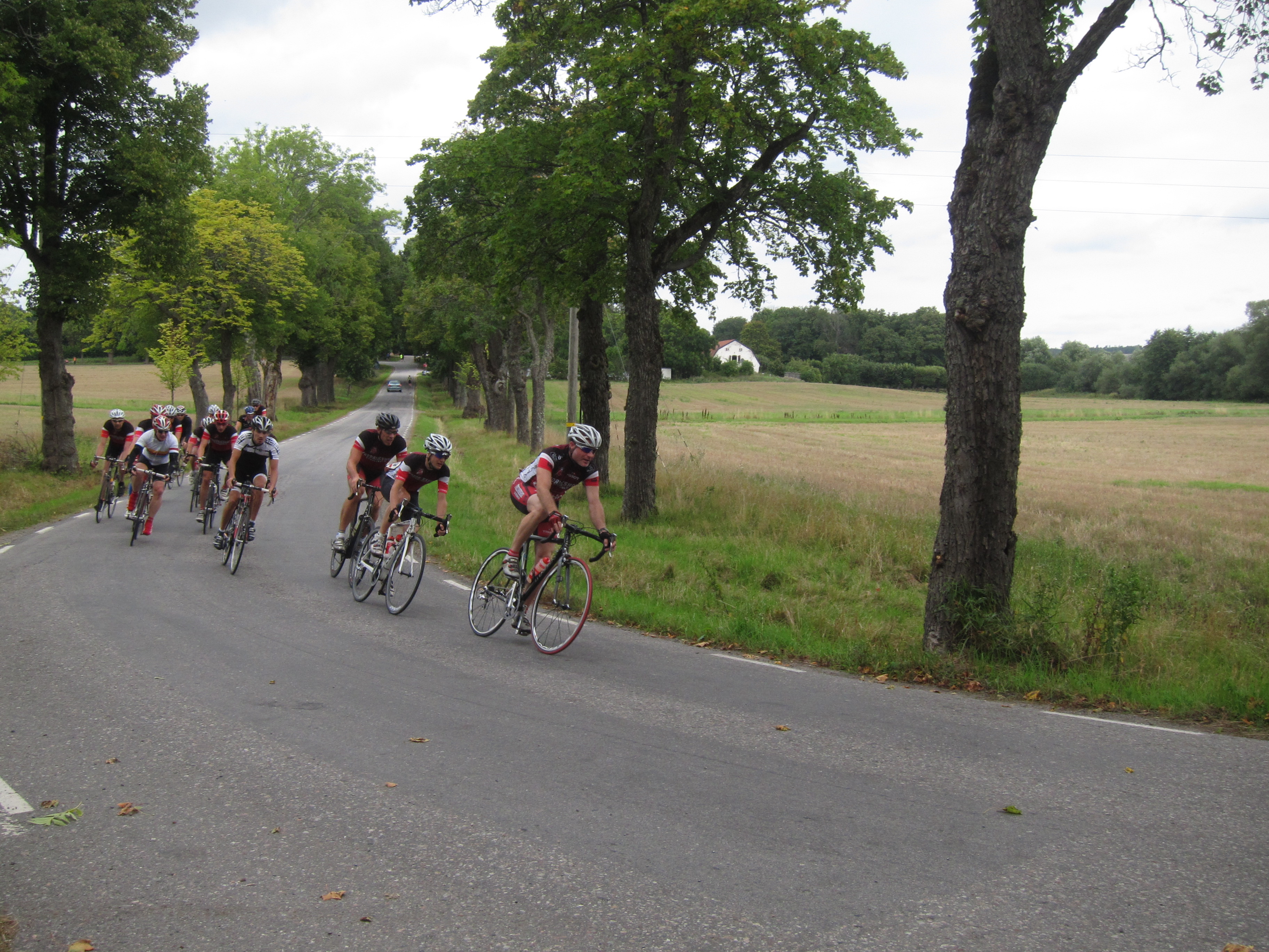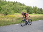 Starten går och jag lägger mig bakom Jonas omgående. Efter en högersväng kommer en backe på kanske 5-6 % och 200 m – där attackerade Jonas och jag gick med. Lucka ner direkt. Vid toppen på backen kände jag att jag aldrig skulle kunna ligga bakom Jonas i resterande 55 km, och väntade in klungan istället. Väl där hade vi svårt att få igång samarbetet, många trötta efter backen. Jonas ökade och någon sa att vi kunde låta ledaren trötta ut sig lite. Bara det att ledaren är grym på att gå loss solo.. i de knixigare partierna på andra sidan sjön ökade han ännu mer och det fanns inte så mycket mer att göra än att få till ett någorlunda bra samarbete i klungan och så småningom hänga av folk inför upploppet.
