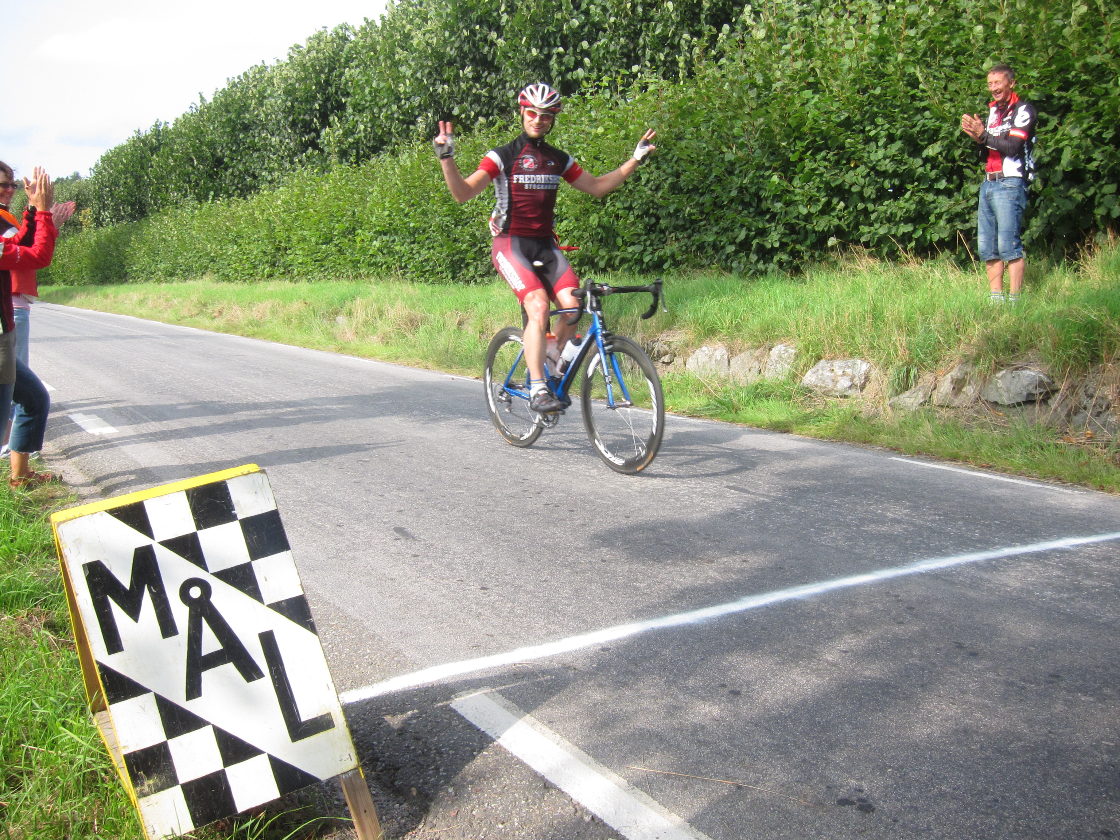 Tyvärr hängde Mic av sig från klungan på andra varvet och rullade in solo i mål en bit efter klungan, men Henrik, också från Fredrikshofs Lidingögrupp, plockade en sjundeplats!