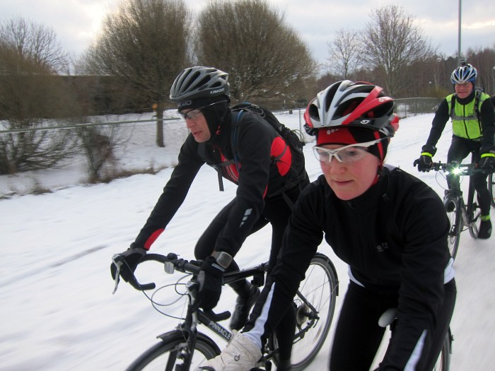 Ny lördag, nytt tidigt uppvaknande för att ta sig ut på distanspass! Idag blev vi hela 10 st på träningen! Samtliga med dubbdäck på cykeln.