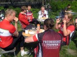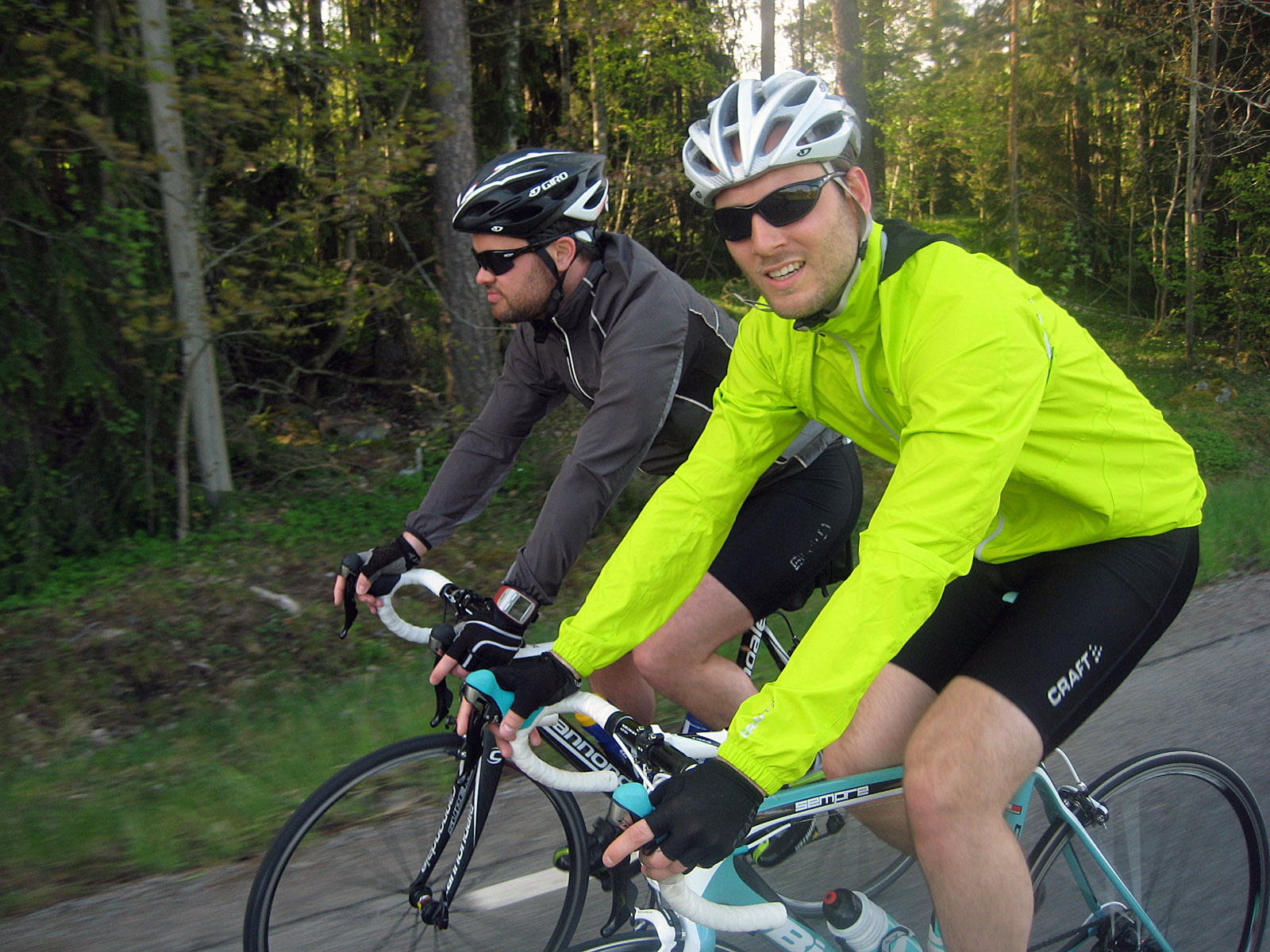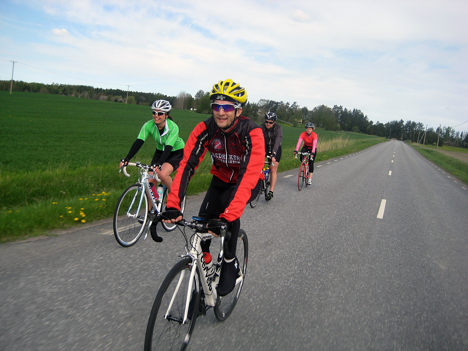 Jag måste säga att jag blev imponerad av samtliga i gruppen, det är inte helt lätt att ta sig ut en sådan här dag och köra mil efter mil. Alla åt bra, drack bra, cyklade säkert och hade järnkoll på hur man skulle bete sig. Lite skillnad var det när vi blev omkörda av en av snabbgrupperna precis när det var möte med bil 😉 dessutom blev vi avskurna då gruppen gick in för tidigt framför oss. Dock är det sådan här feedback som är perfekt att ge efter träningen, så att alla kan förbättre säkerhet och gruppkörning till nästa gång.
