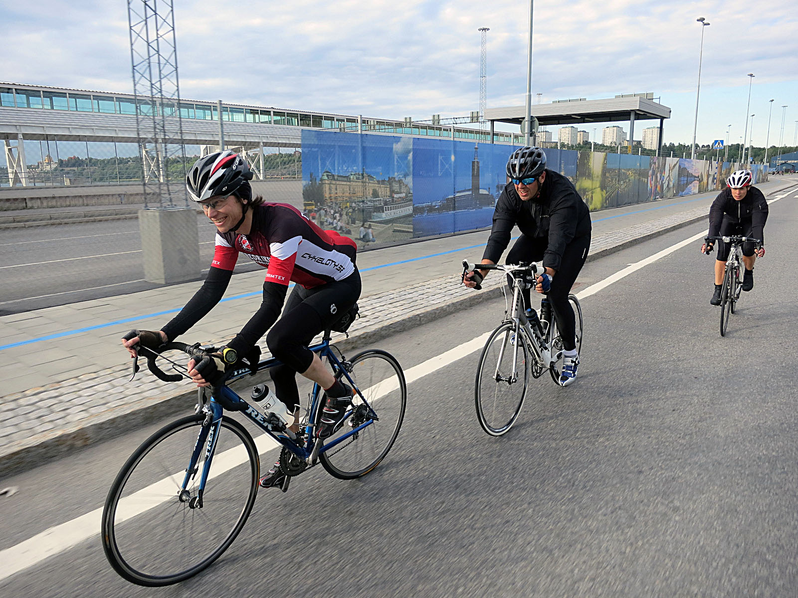 Peter och Mic tog i sedvanlig ordning snabbsnabbgruppen ”SUB 8” med som Vilma uttrycker det ”mycket kolfiber och högprofilhjul” i gruppen, medan Richard, Vilma och jag delade på knappt 20 cyklister som ville ta det lite lugnare. Eller ja, delade och delade – det var bara jag och Johannes som ville köra backintervaller på Lidingö så vi föll för grupptrycket och körde Vilmas föreslagna spurter på Tallinkpiren (x 10) och lugnt på Djurgårn efteråt.