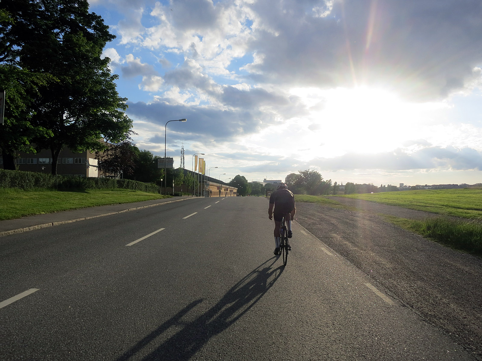 Jag startade hårt och efter 1 varv såg jag en rätt okej cyklist snacka i telefon vid sidan om vägen. Efter 2:a varvet anslöt han, Daniel Rytz. Vi hade lite olika intervaller, Daniel körde fyror medan jag körde komplett Kaknäs-temposträcka (ca sub 6:30-7 min för ett varv lite beroende på hur man räknar). Fyrorna startar vid trafikljuset på Lindarängsvägen och avslutas vid Kinesiska ambassaden strax innan Tekniska muséet.