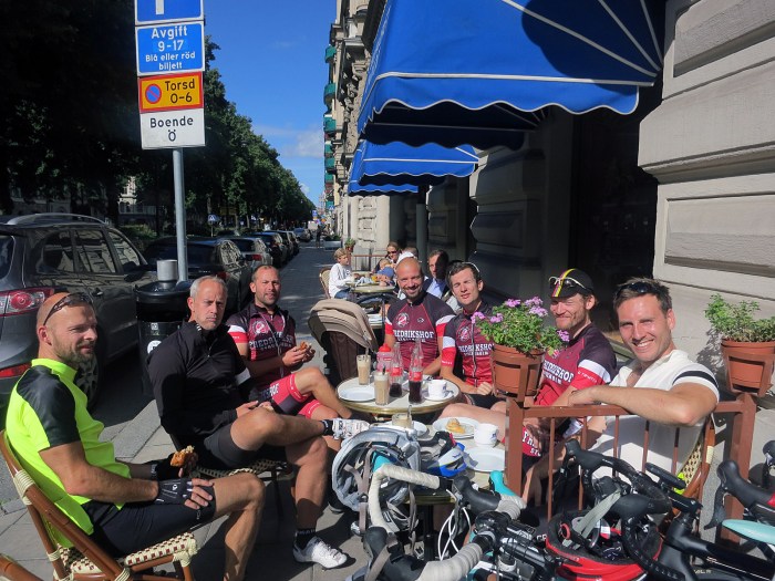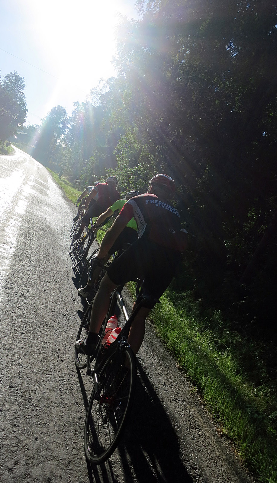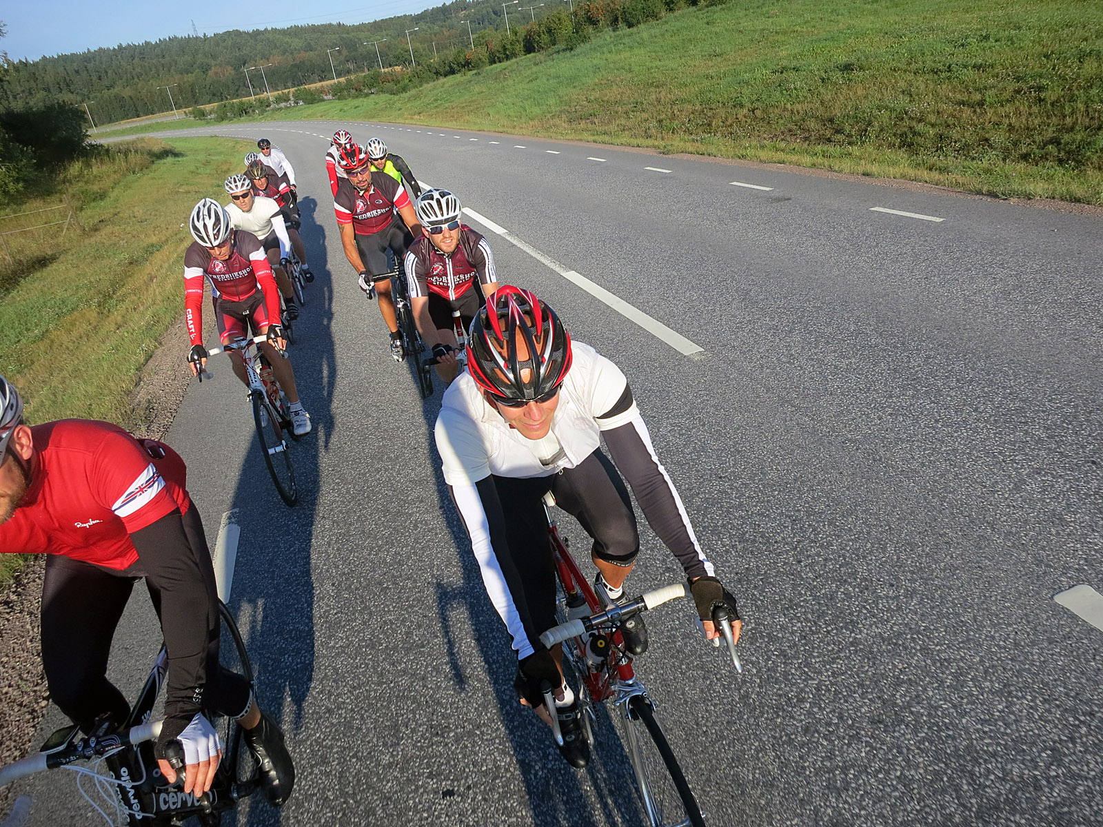 08.40 Shit, pulsen går inte ner! Gå upp och dra och sänk tempot. Ah, det känns bättre nu. Ren och skär njutning på tomma vägar i Roslagen.. Vilken grym grupp!