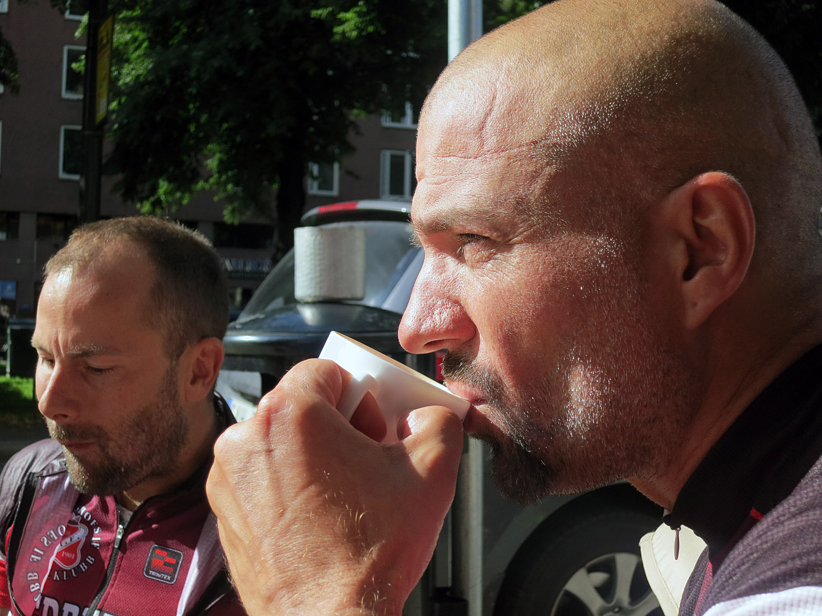 08.35 Andnöd och hela kroppen bränner. Samla ihop gruppen, stanna, återhämta. Nya instruktioner och sen iväg på småvägar i Roslagen i två smågrupper.
