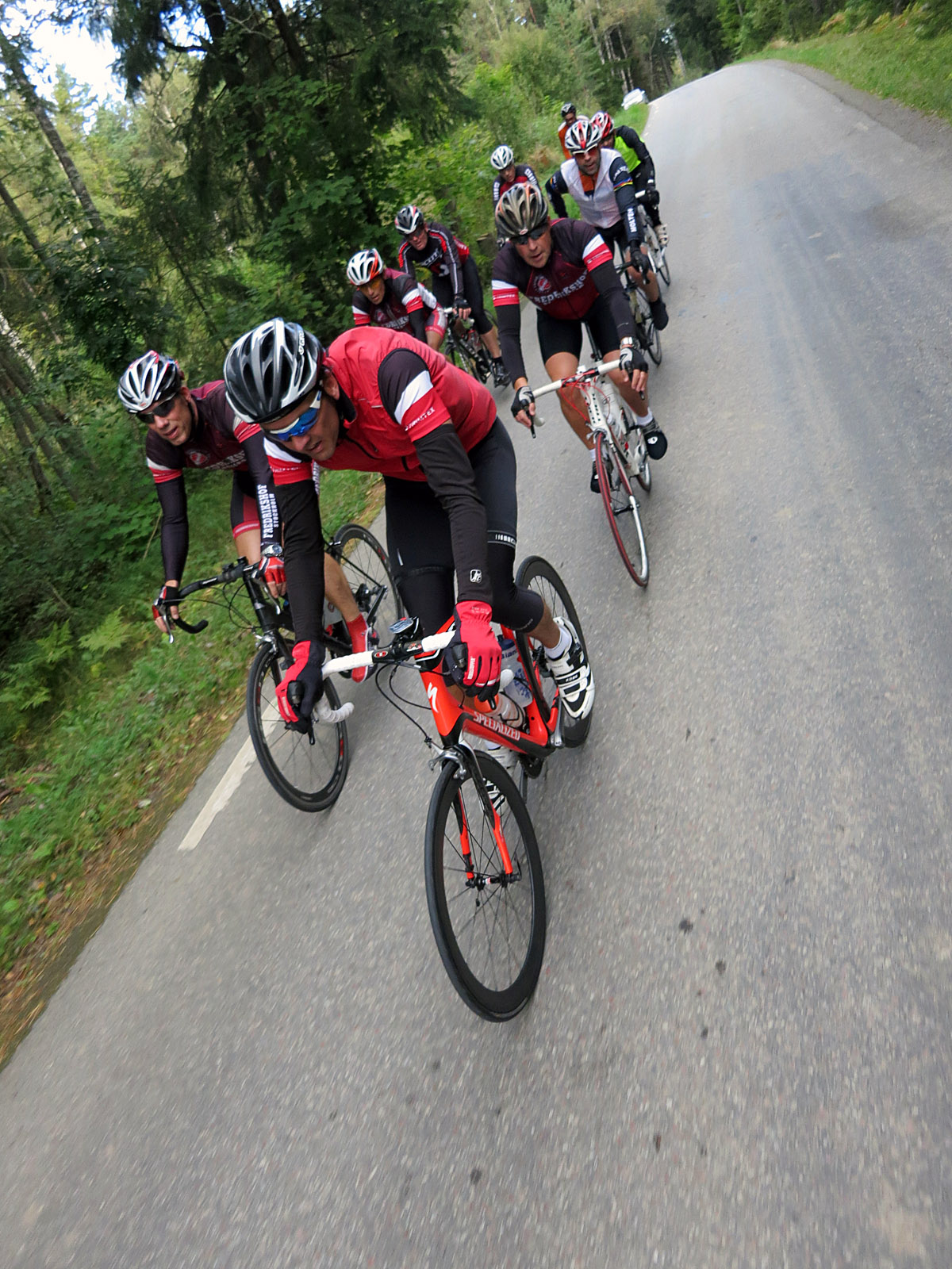 I höjd med Angarn blev det dags för dagens sista fartsträcka, på’t igen bara och Kaspar, Otto, Andreas, Aivar seglade iväg efter halva sträckan. Jag hade svårt att täppa lucka men lyckades slutligen komma in på Aivars rulle, innan dragjobb var klart och det samlade ihop sig till spurt mot viadukten. Spurt som ja, Kaspar, inte helt otippat plockade. Här tror jag också Andreas hade en trasig växelvajer, så riktigt imponerande att köra så starkt på avslutande fartsträckan. Också imponerande av Aivar att trots totalt rubbat balanssinne under sommaren komma tillbaka och vara så stark.