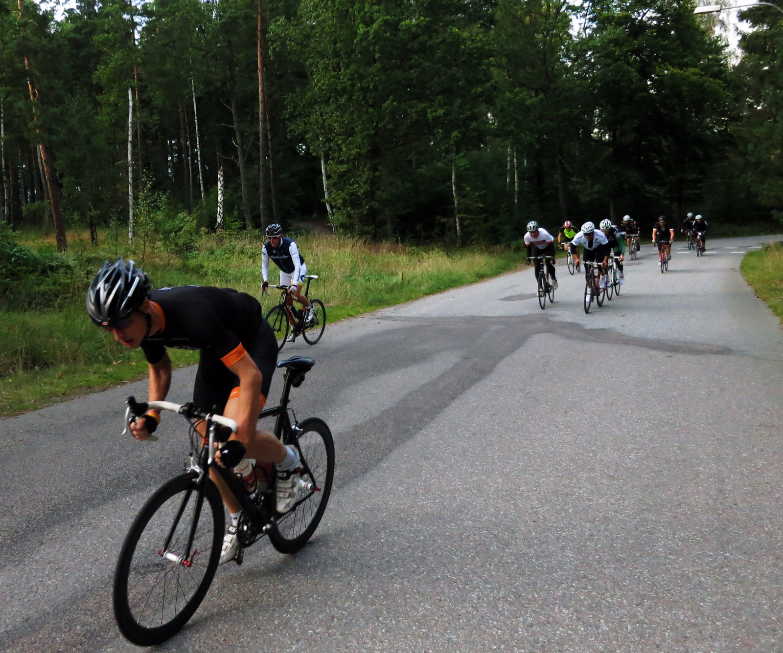 Vi körde på med Södergarn x 3, Askriket x 2, Abborrbacken x 2 och så Tre fiskars backe baklänges så att man fick en lång och härlig backe på slutet. För egen del är det en skam att inte ha KOM i alla de där backarna, så jag får ta mig ut på en Strava KOM-runda vid tillfälle och sätta några bra tider.