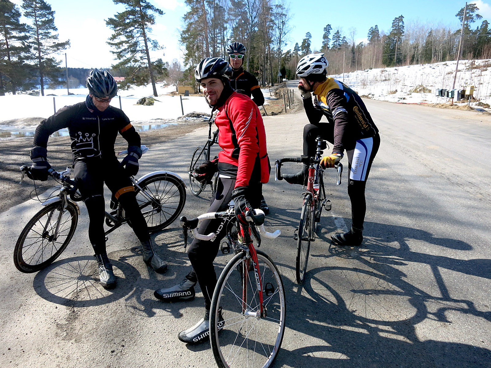 Vi styrde från Hornstull mot Lissma och sedan Årsta Havsbad. Vi blev ett glatt gäng på säkerligen 12 pers och med vind i ryggen gick det som på räls, så att säga. En stackare hade CX med dubb så han fick ligga längst bak på rulle, nog så slitigt kan man tycka. Tomaz kom på vintercrossen med aerohjul, också imponerande då han fixade allt idag.