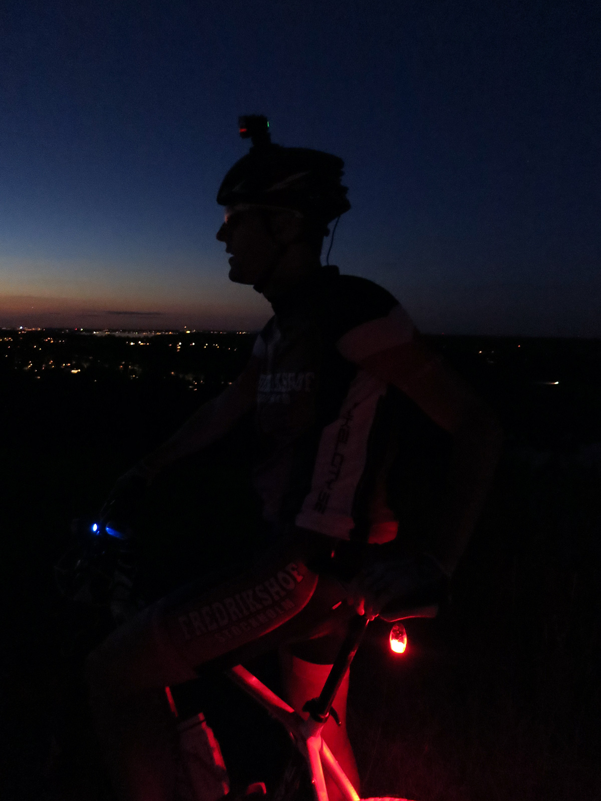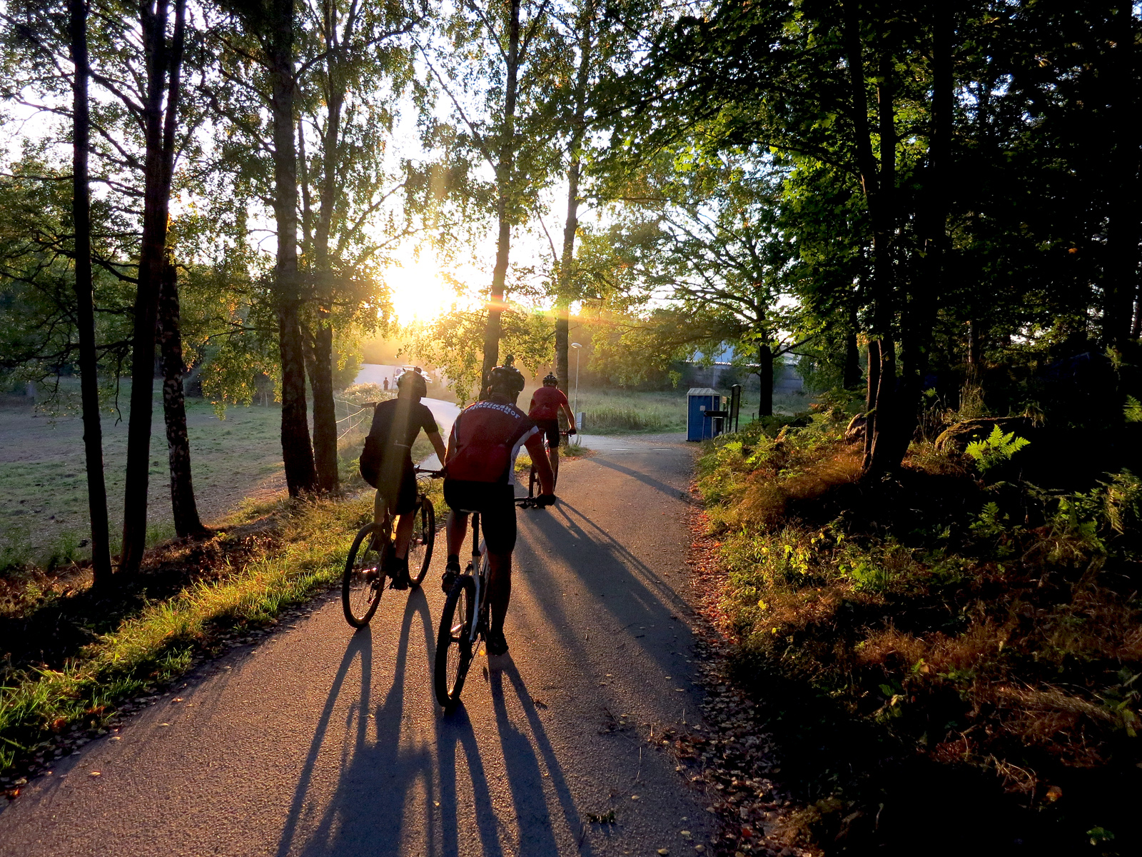 Helt vanlig MTB-kväll på Lidingö. Solnedgång, skog och bajjamaja.