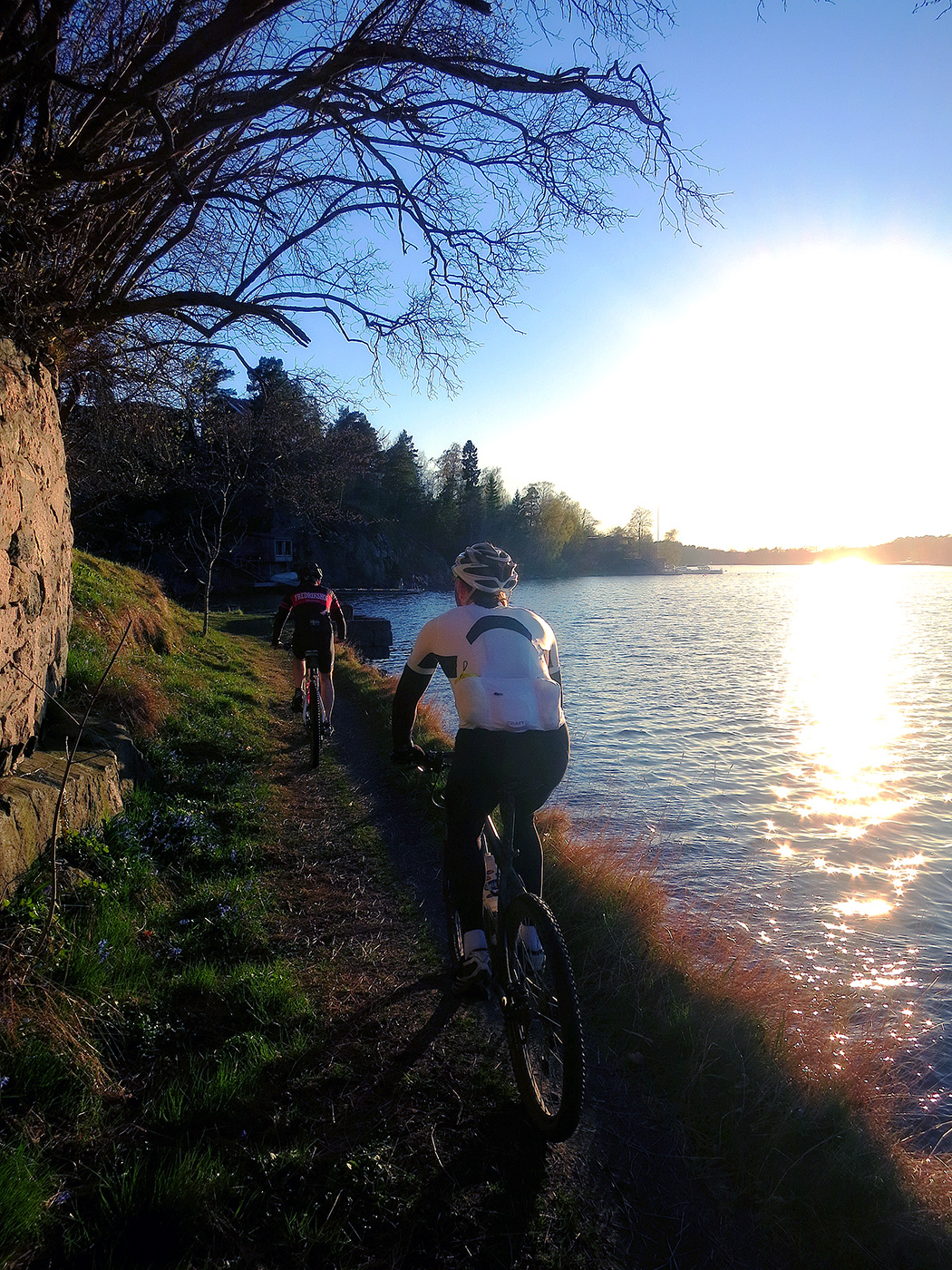 - Lågt stående sol, solen i ögonen och småbrötig stig med Östersjön 5 cm till höger? Inga konstigheter. Bara att veva på och njuta..