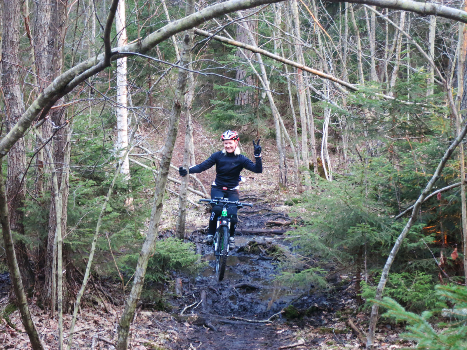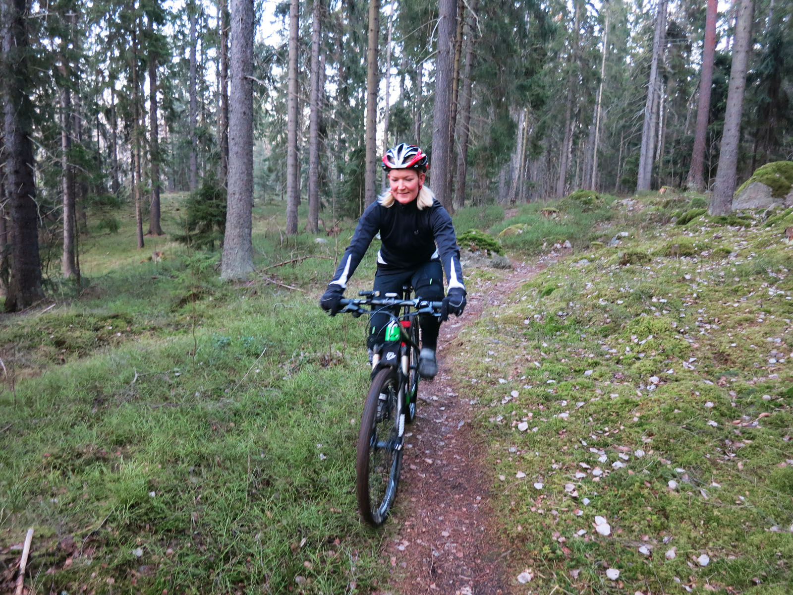 Jag och Vilma flexade ut lite i eftermiddag och stack ut för att köra lite sköna MTB-spår i Grönsta. Det blev lite nya stigar och både fram och baklänges i dagsljuset. På slutet även en solnedgång.. Lyx!