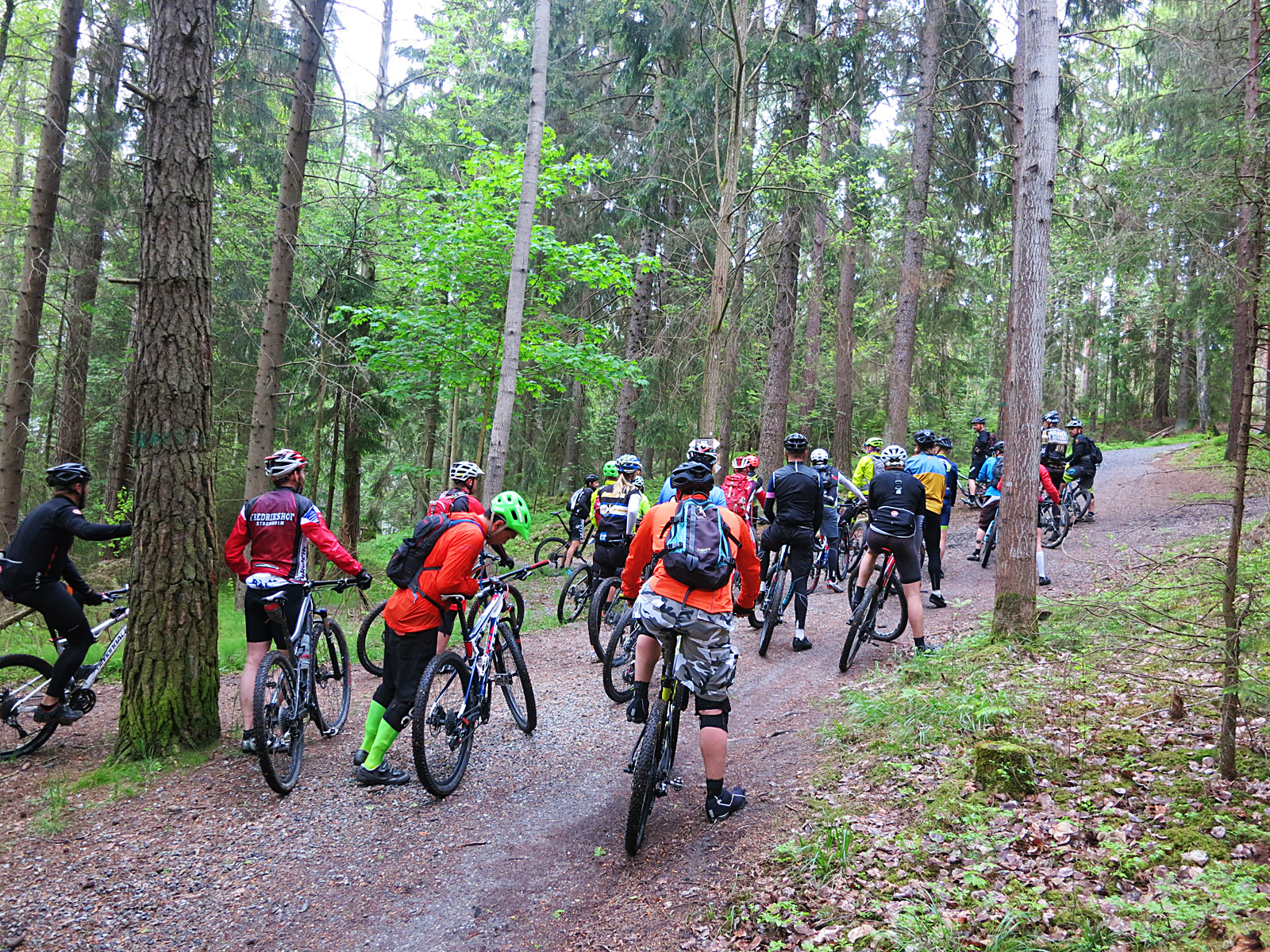 Vi hann med trycksladdar, teknikträning på ”omöjlig” uppförsbacke, genomslagspunka från mästaren själv och däremellan lite macka och gott på Rönneberga, innan vi visades runt på delar av kommande MTB-spåret som startar på kursgården.