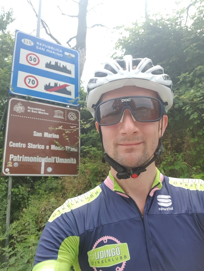 Den som påstår att italienare bryr sig om cyklister, har helt fel. Det här är värre än i Sverige. Dåliga vägar och mängden sjuka omkörningar av bilister gör mig paff. Efter vad som känns som en evighet, viker jag av och får äntligen njuta av lite lugna vägar och givetvis uppförsbacke till San Marino.