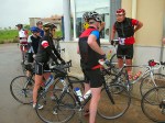 - Här var det dags att få på sig vindvästar, armvärmare och annat som kunde tänkas skydda mot regn och kyla 🙂