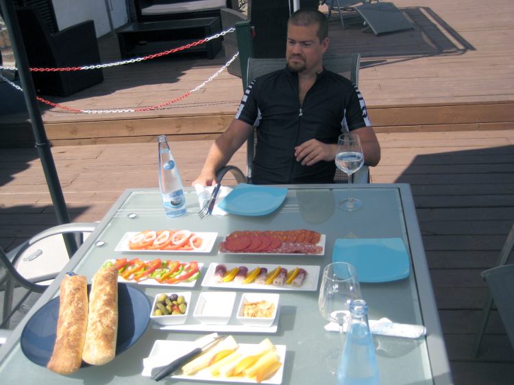 Efter att vi intagit frukosten satte vi av mot bergen, via utkanten av Campanet och sedan Escorca. Redan efter 2 mil började det gå uppför i stadiga 5-6 %. När det gått uppför i drygt 25 km och vi kom till en restaurang vid lunchtid var valet enkelt – vi beställde en varsin grillad kyckling med gott till och fyllde även på vattenflaskorna innan vi fortsatte.