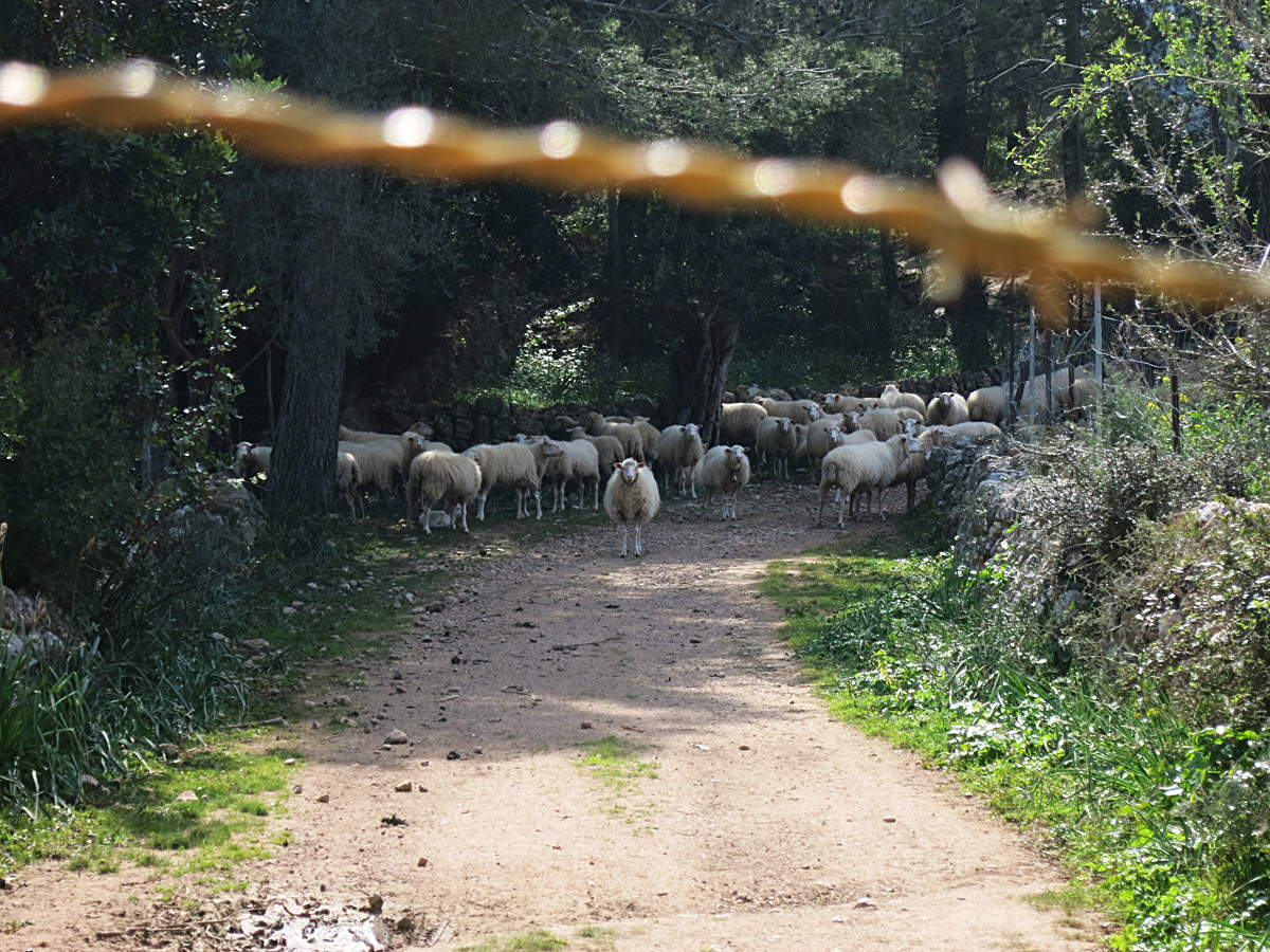 Efter den goda lunchen tog vi oss ner mot Soller på serpentinvägarna, men precis innan byn så vek vi av från huvudvägen och uppåt på först asfalt och sedan grus och så småningom stig. Riktigt skönt efter en kylig nerförskörning. Här började vår pilgrimsfärd. Till skillnad från övriga på den relativt trafikerade leden, så cyklade vi 🙂