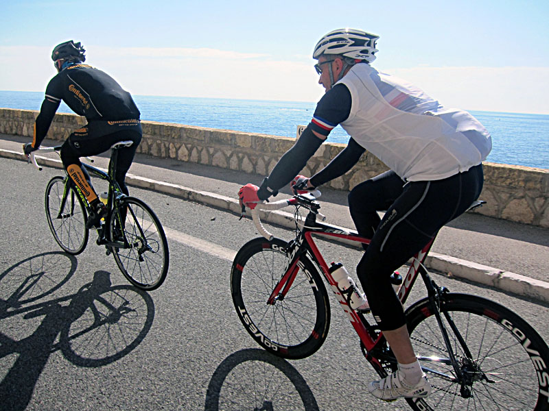 Första dagen i Nice för mig blev till riktig glädje! Gabriel, Karl och jag tog oss först bort mot Monaco, på riktigt fina vägar längsmed kusten. En del trafik förvisso, men med utsikten var det bara att njuta. Väl i Monaco tog vi oss an stigningen till palatset som sig bör när man är turist. Sedan bar det rakt mot Col de Madone, Lance Armstrongs testbacke på den tiden det begav sig!