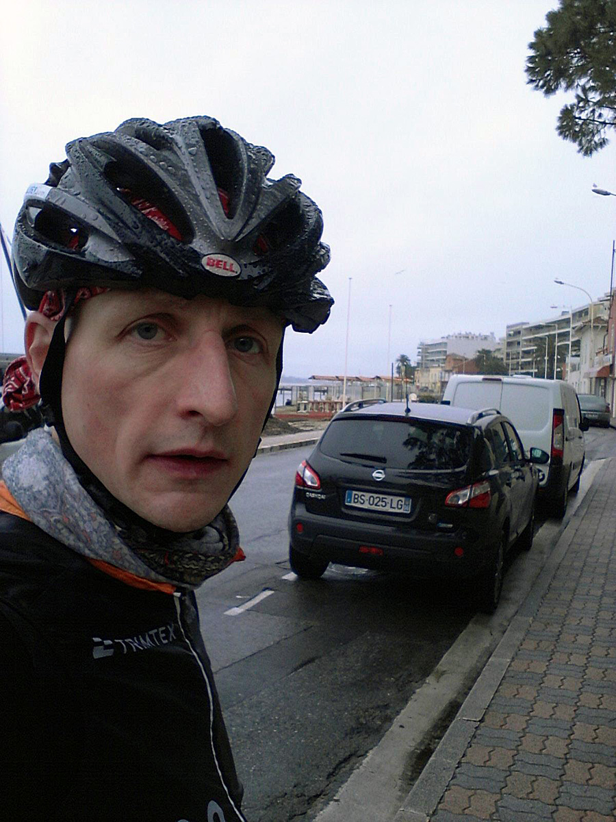 Christer kom ner på eftermiddagen och körde en schysst runda: Nice-Cannes tur & retur. Med fräscha ben blir han farlig i stigningarna resten av veckan..