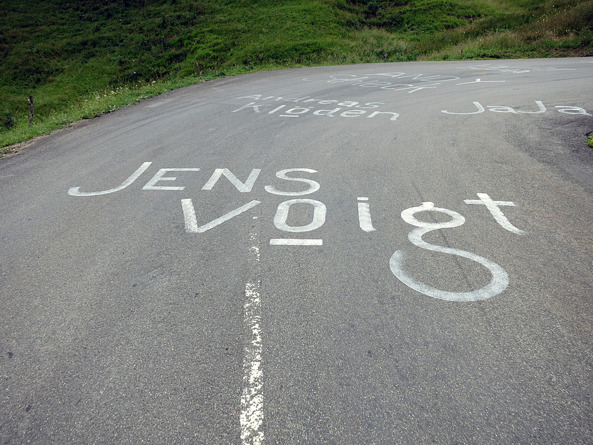 Behöver jag nämna att vi cyklar i Tourens fotspår.. Här hyllas Voigt! ”How are your legs?” stod det på ett annat ställe.