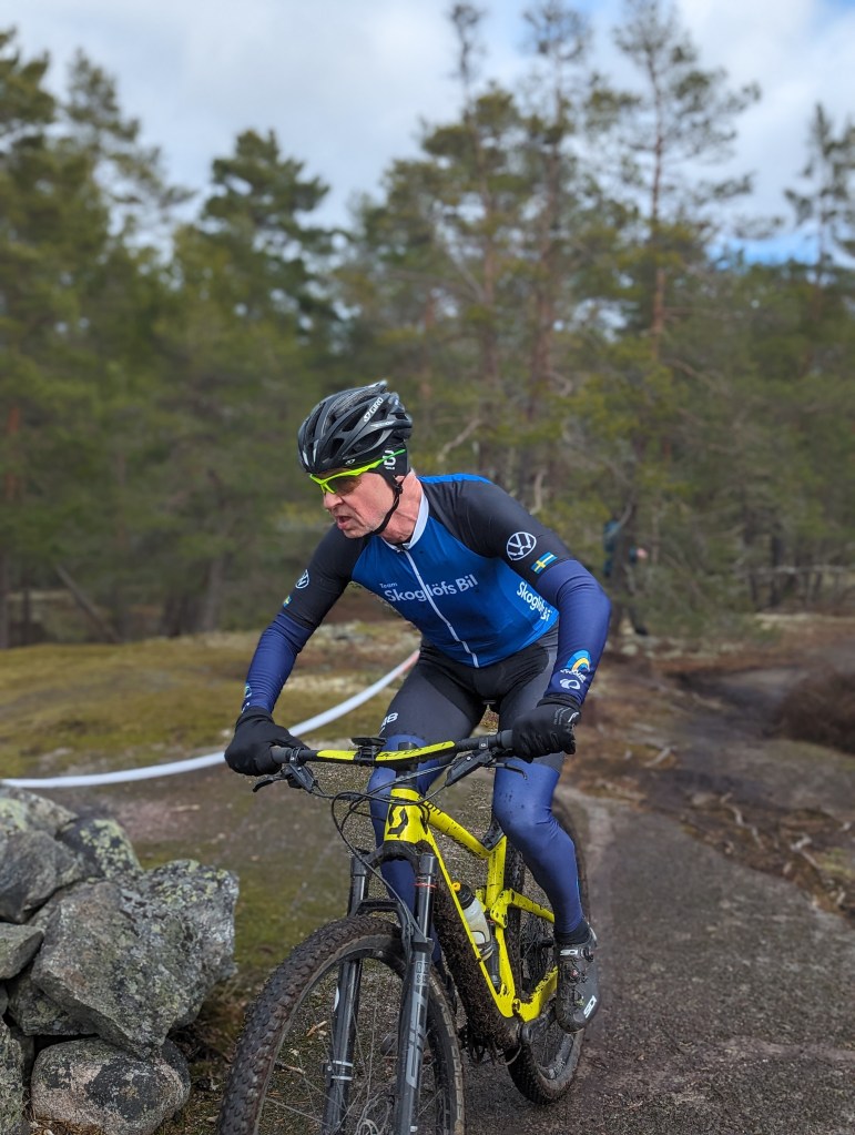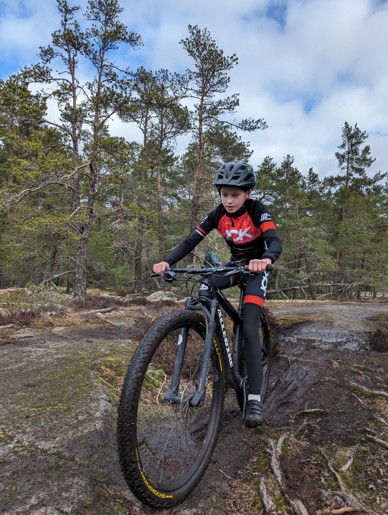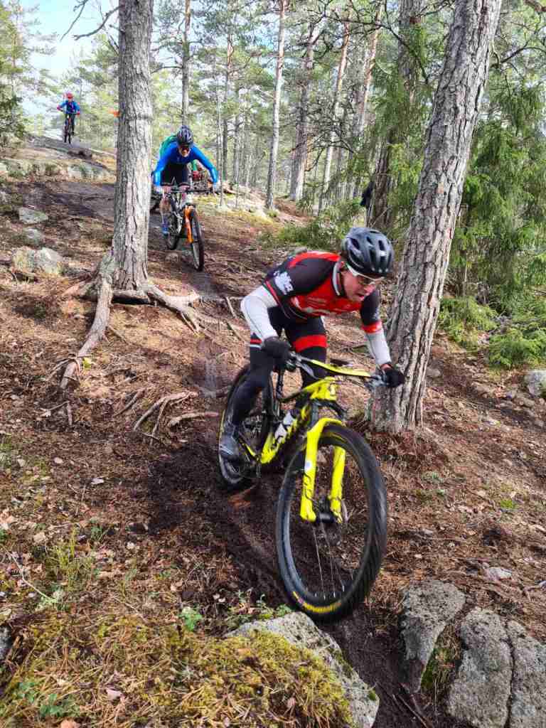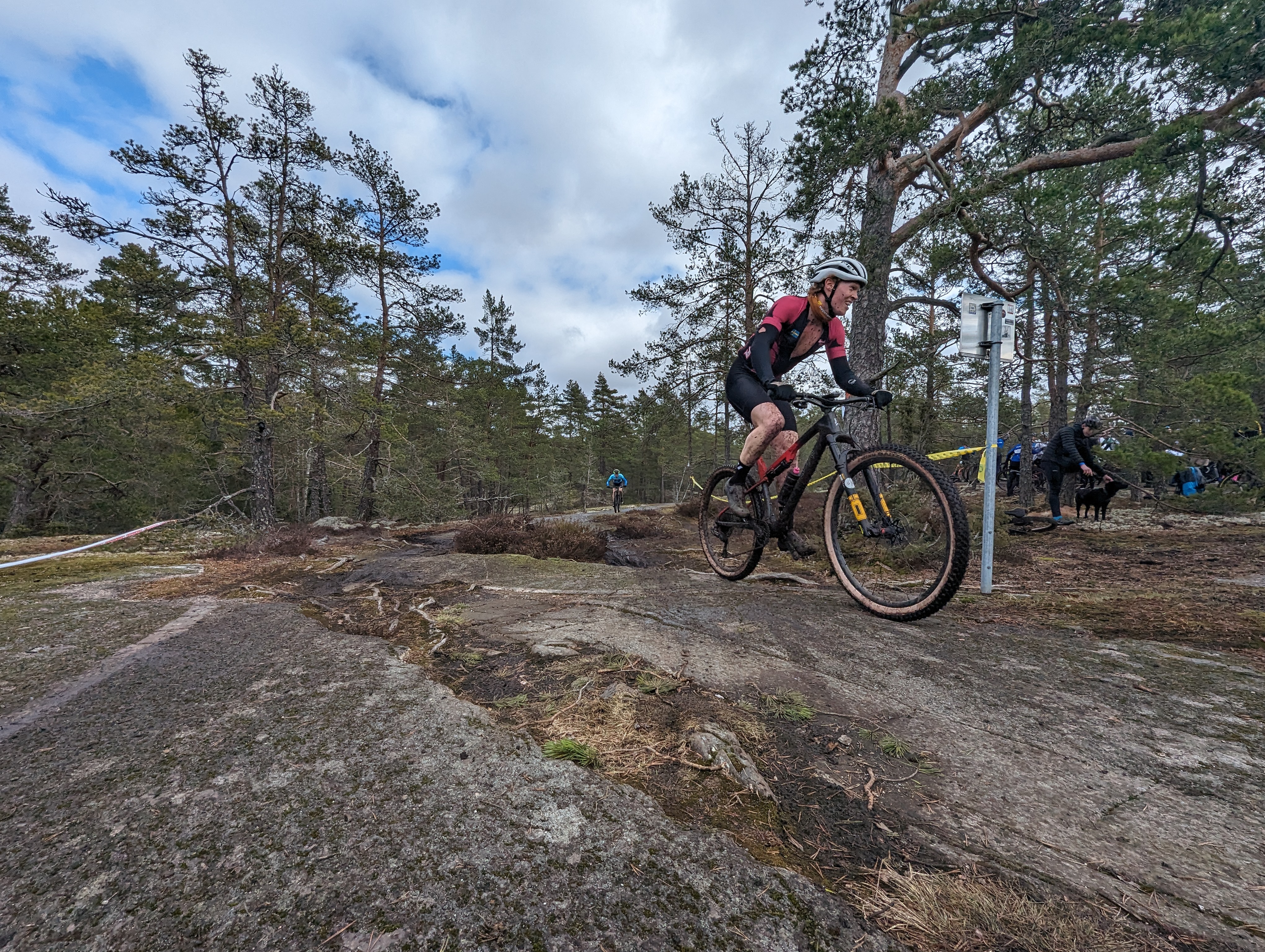 Så småningom går vi in på det nya partiet för i år – med två tekniska branter att klara av. Den första zickzackar jag uppför och fixar det och drar ifrån. Den andra kommer jag helt fel på och hoppar av och springer, när cykelkompis Niklas plötsligt dyker upp påhejandes i skogen. Tack för det!