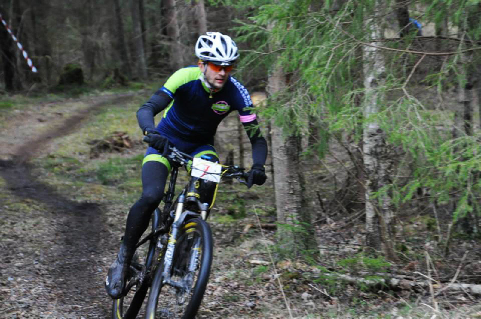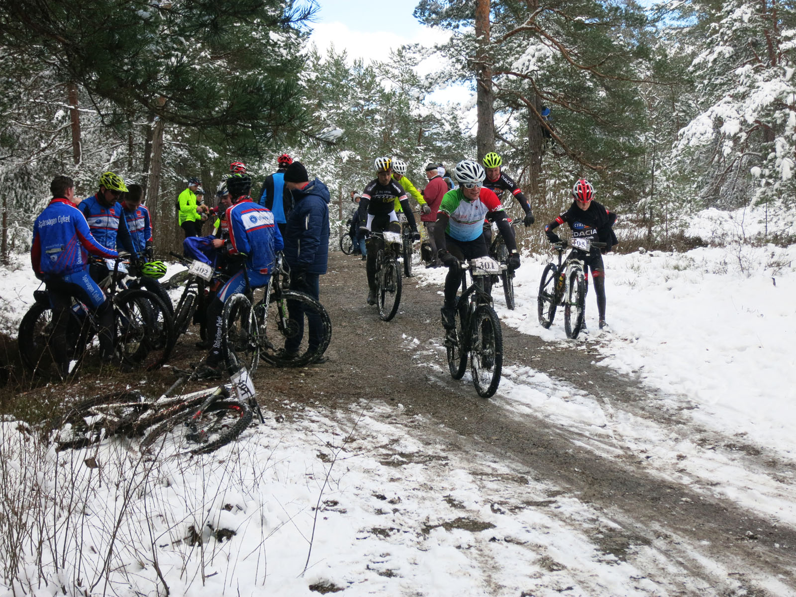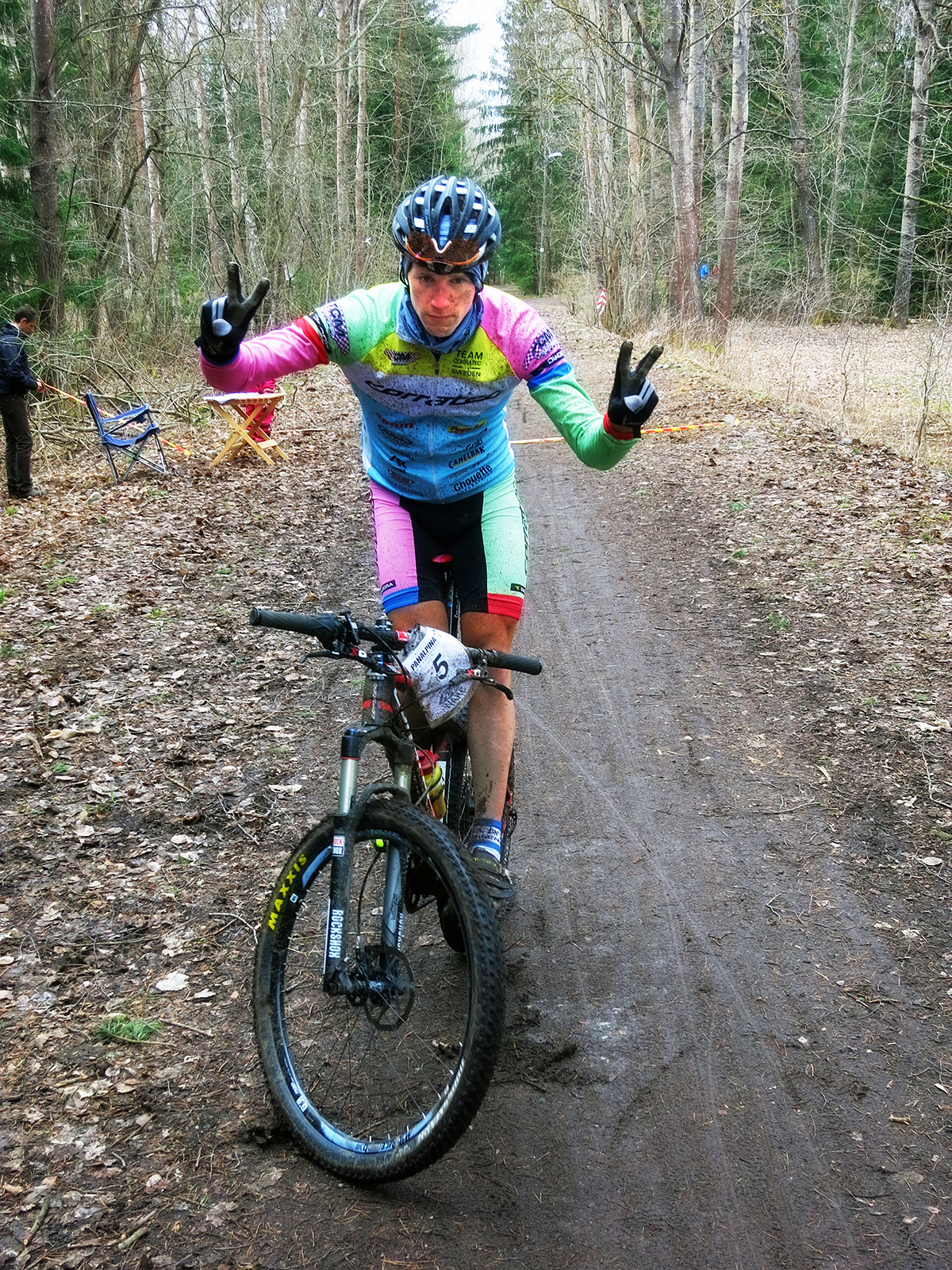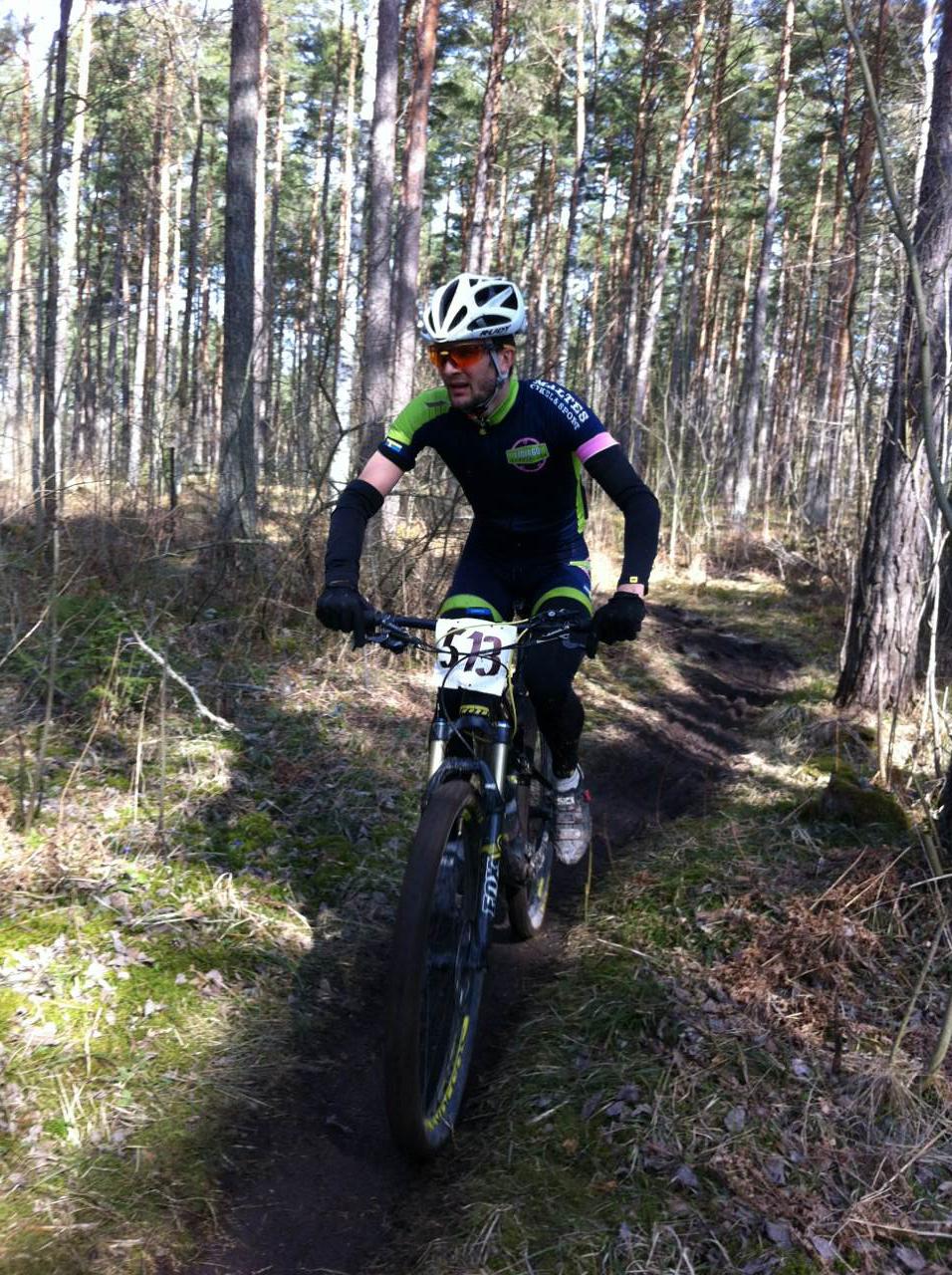 Vid start kan jag inte klicka i med mina leriga clips (jag vet, dåligt..) och 20-talet tar sig förbi. Sedan är det bara att köa vid de knöligare partierna innan jag kunde börja gasa ikapp placeringar. Efter en liten stund har jag min främste konkurrent Andreas precis framför, med en gubbe mellan. Jag känner att benen är skapliga ändå och ligger kvar där en stund. I en lerig utförslöpa så tar jag dock fel spår och åker in i ett träd och klotar. Snabbt upp igen och köra genom oceanen av väta på vägen nedanför. Där ser jag ingenting för jag har såklart glasögon på mig och det bara sprutar runt omkring mig. Några tar sig om och vid varvning slänger jag ifrån mig glasögonen och en vänlig själ sätter fast dem på min ryggsäck (tack!). Pang på och börja köra ikapp igen.