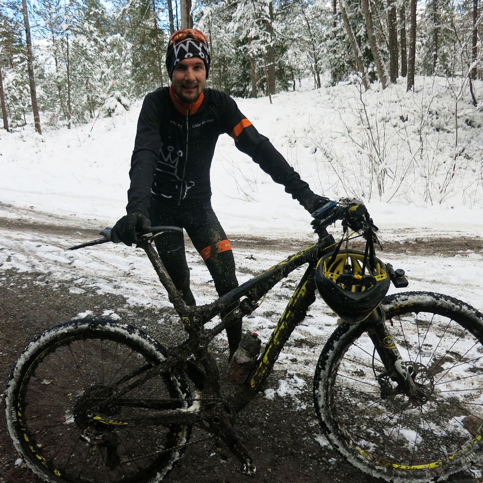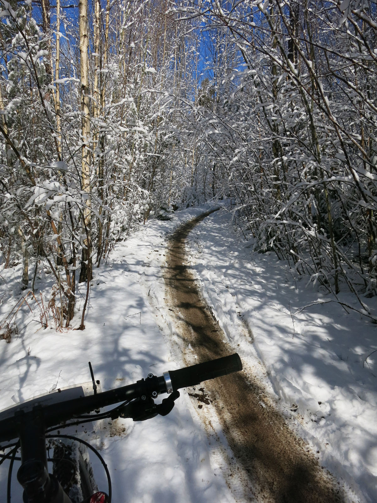 För den som undrar – det gick utmärkt att köra MTB med vanliga däck på snön. Lite lägre tryck bara så rullar det fint. Inga problem idag med Maxxis Ikon 2,2″, slanglöst.