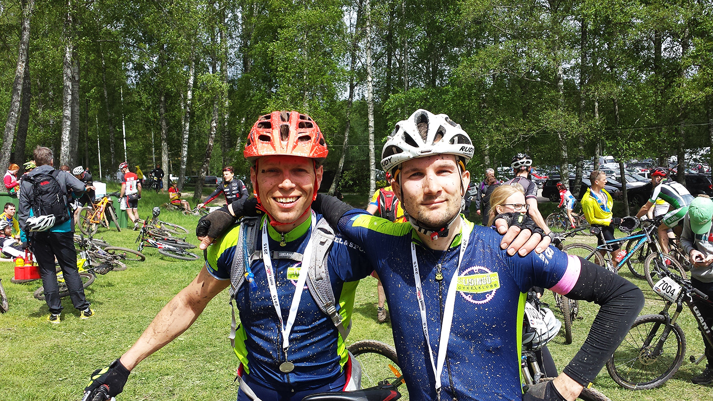 Klassisk målgångsbild! Christian och jag. Livet är lerigt, soligt och gött!