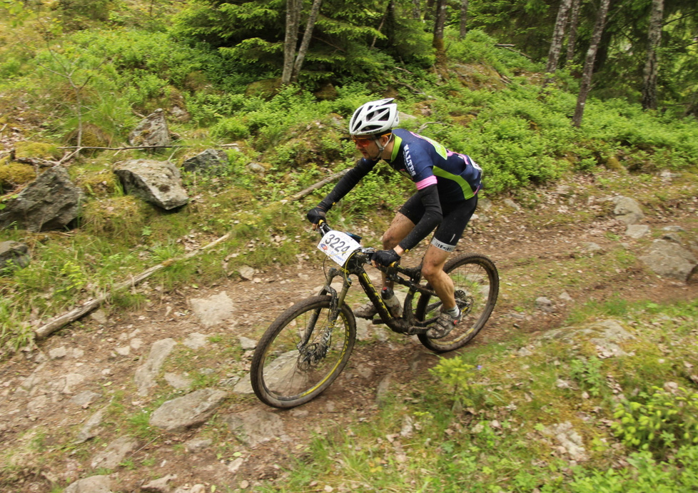 In på tekniska avslutningen med hällar på loop 1 och jag har sällskap med Christer från Borlänge, vi är rätt jämna och ser varandra mycket på långloppen. Jag har riktigt dåligt flyt, däcktrycket är för hårt och jag har pumpat upp framdämparen för mycket med. Men jag går ifrån, är ensam vid varvning och in på Diagonalen på loop 2 har jag fri gata ända fram till surhålet, där jag hoppar av i stället för att chansa, Kippilä plötsligt går om och jag får sällskap av en hel grupp bakifrån. Det är nyttigt, för någon minut senare är vi ute på en flera km lång grusvägsraka, där jag äntligen kan ligga lite på rulle och återhämta mig.
