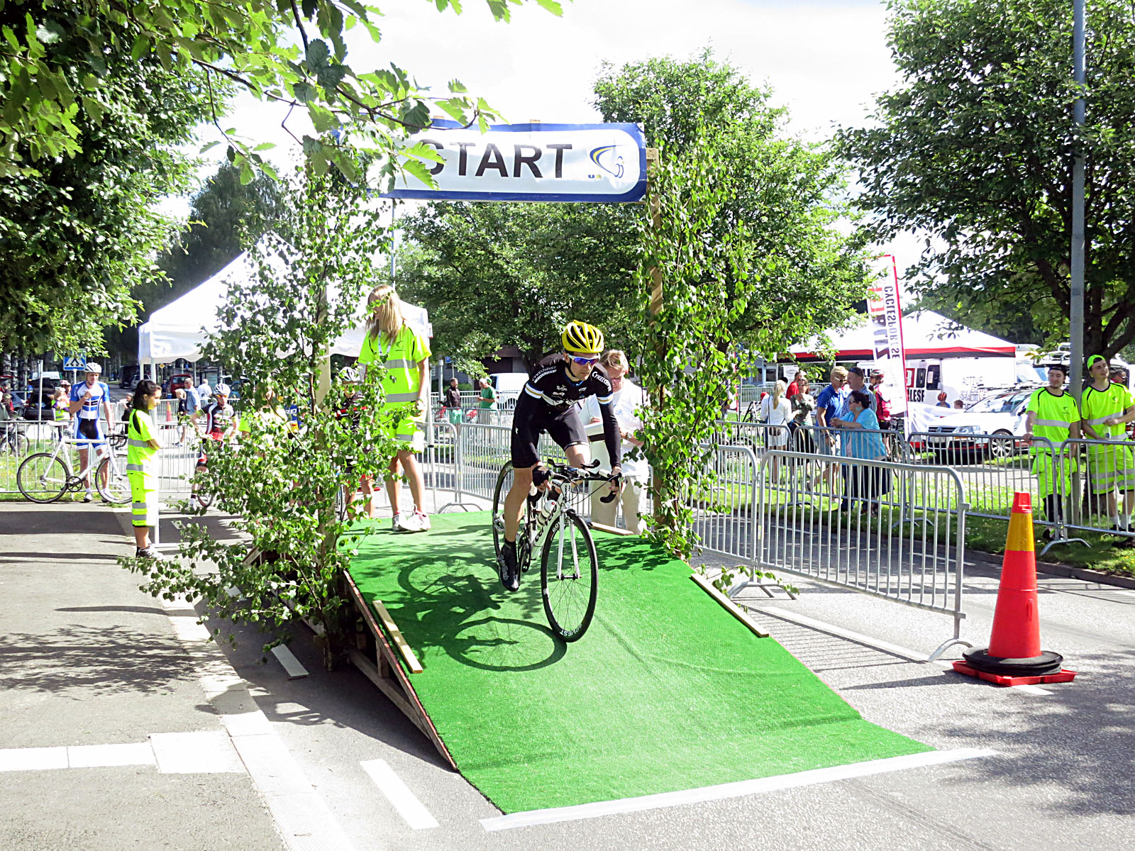 Nere i Tidaholm, hojen har fått lite kärlek och även tempopinnar påmonterade. Imorrn är det dags för 3,3 km prolog som innebär ”backtempo” i CK U6 Cycle Tour. 2 km platt och 1 km uppför, enligt mina co-ryttare Tobias och Marcus i SCK.
