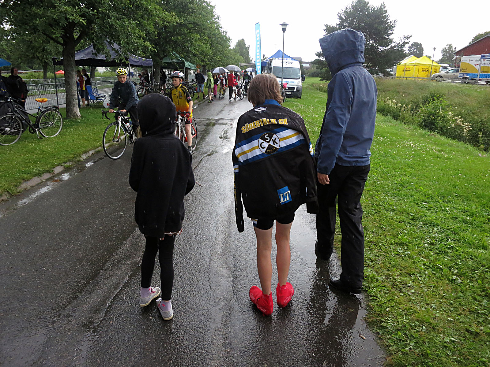 - Detta kommer bli en regnig vecka. 🙂 Min regnjacka var guld värd idag. Jackan åkte bara av sista kilometern för att visa spurtlapp när vi gick i mål.