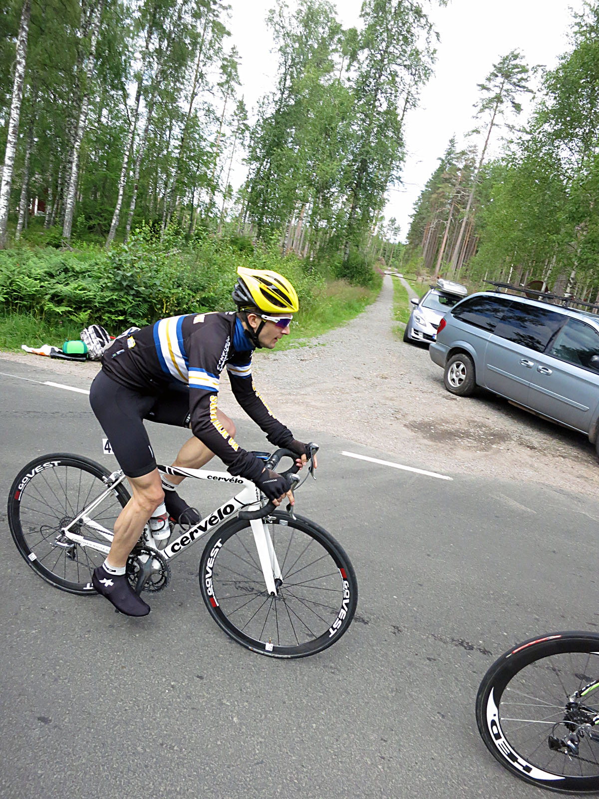 Det gick sjukt snabbt första varvet på dagens linjeetapp i eliten, så snabbt att jag flög av när varvet var fullbordat. Jaha, tänkte jag och fortsatte veva runt i en hög takt innan finländaren Joonas anslöt och vi kunde samarbeta varv efter varv ända in i mål. Rätt tungt att tappa redan efter första varvet när det är 6 varv kvar – men jag är inte den som är den och fortsatte alltså.