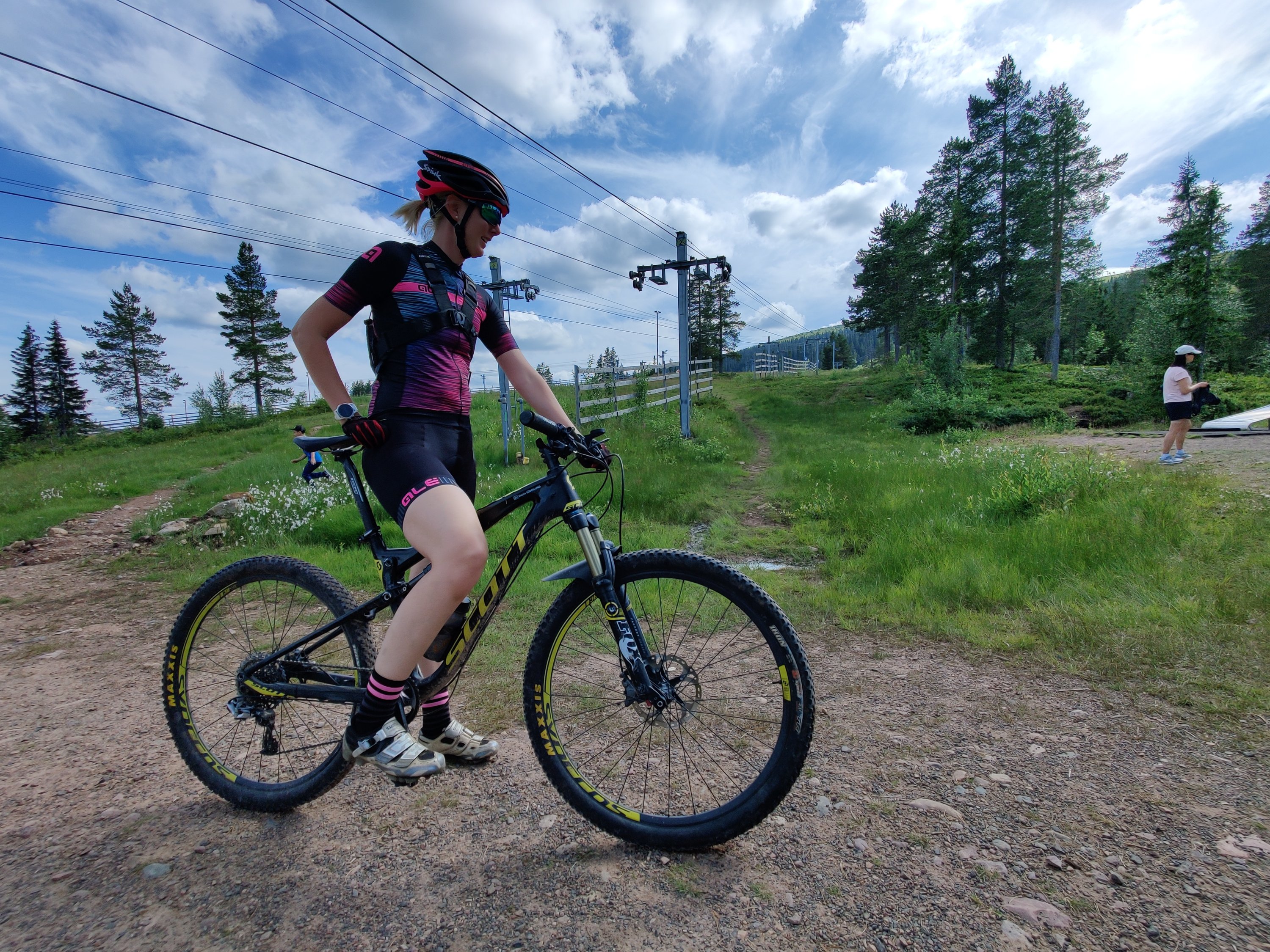Tyvärr missade vi att cykla utför i Ramundberget, men nu är vi i Lindvallen och här är man på sommaren för att cykla. Punkt. (Ok, det finns bra vandringar och annat med, men cykel är det som gäller här på sommaren.)