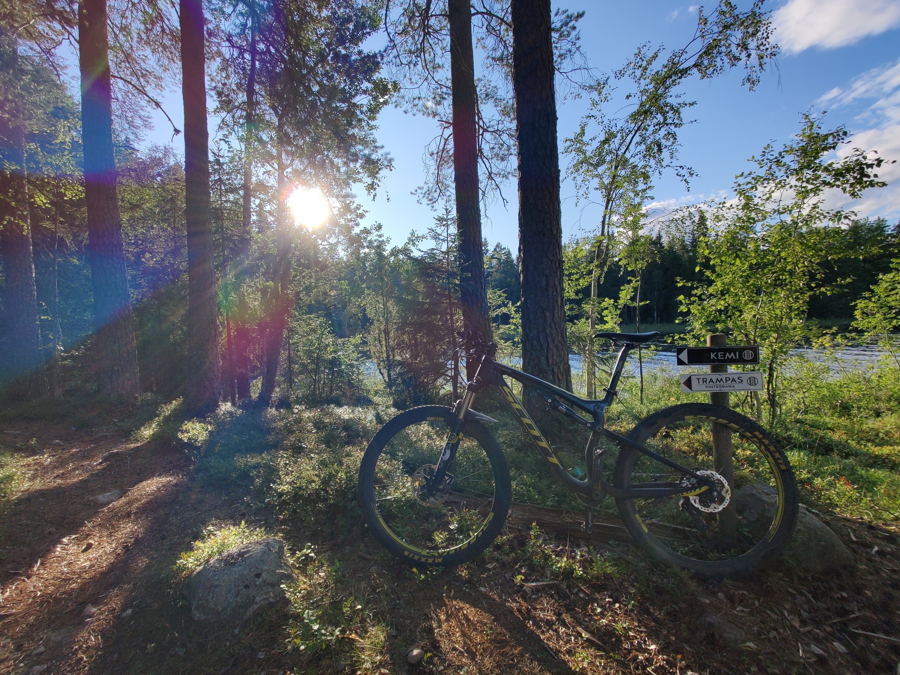 Lagom svalt i luften, sol, inga cyklister i spåren – bara att ösa på favoritstigarna Maja och Lollan. Jag cyklade även svarta Kemi, kanske aningens roligare nu än när jag cyklade den för första gången för några år sedan och inte visste hur svart ”svart” var.